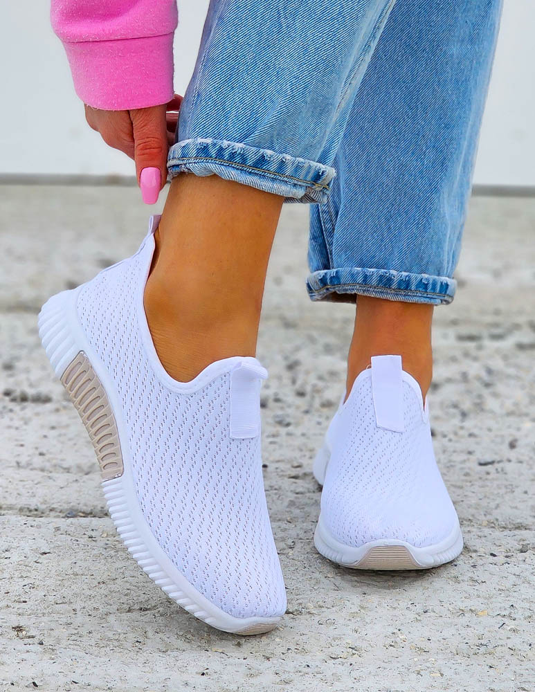 Lekkie Białe Buty Sportowe Damskie Wciągane Manilas