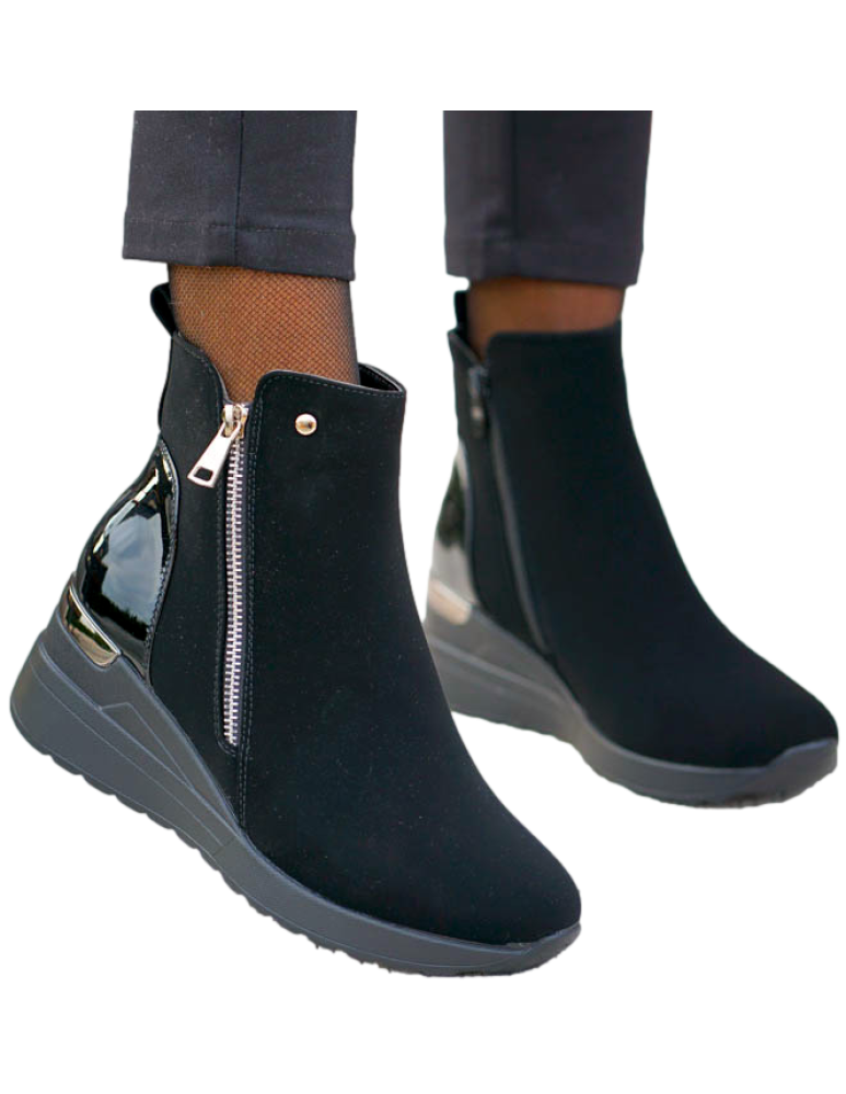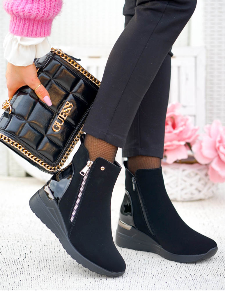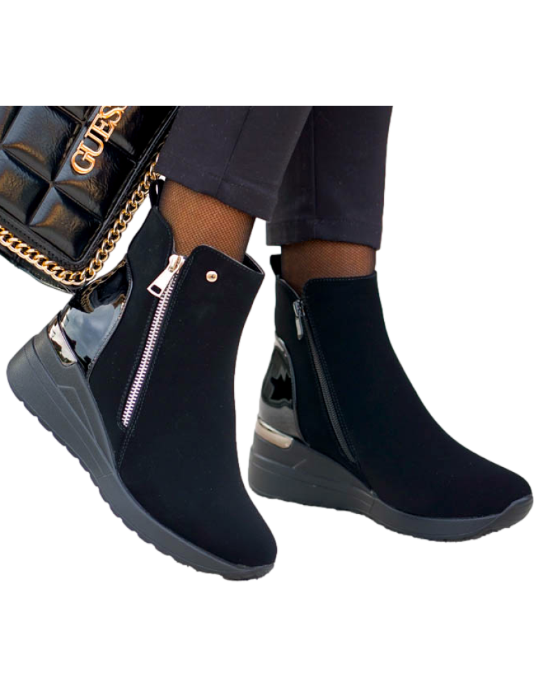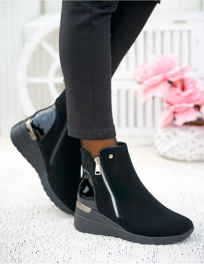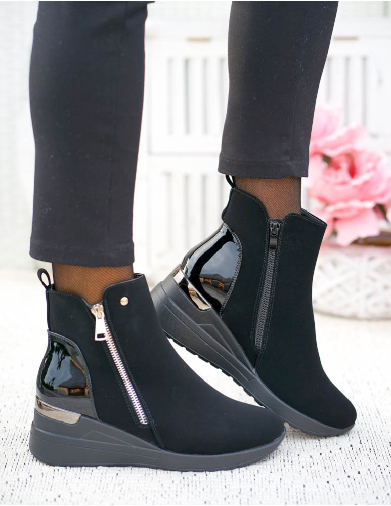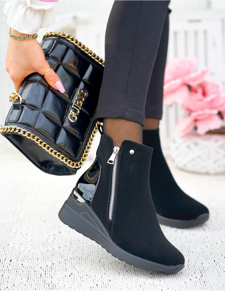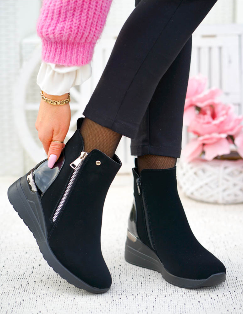 Krótkie Czarne Zamszowe Botki Na Koturnie Save