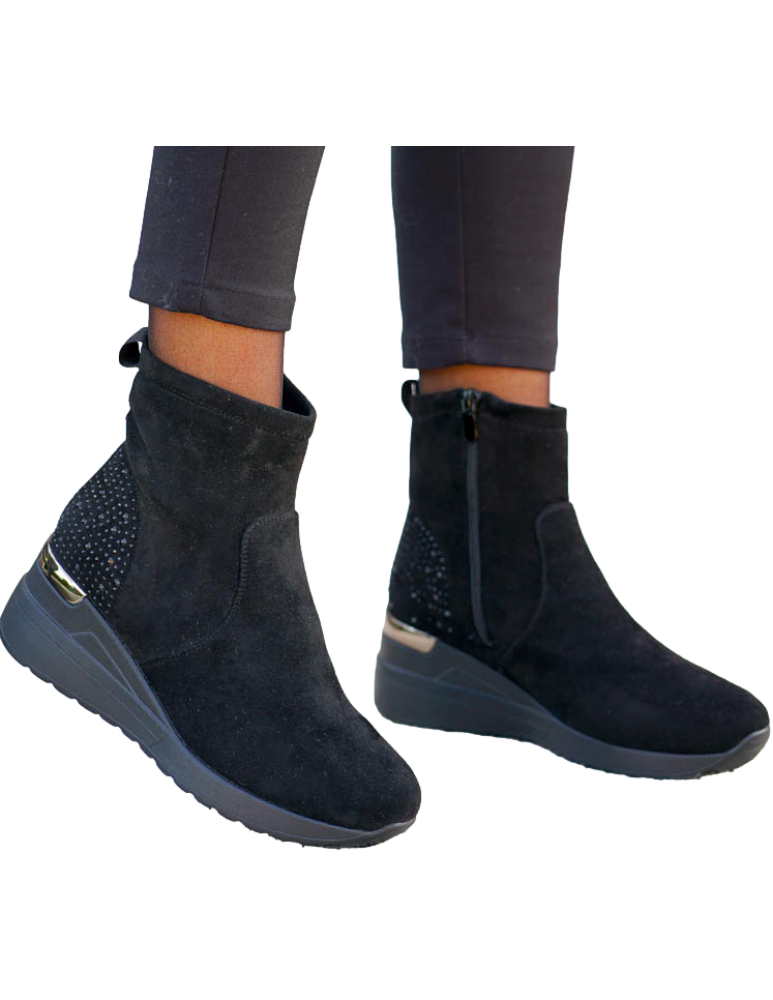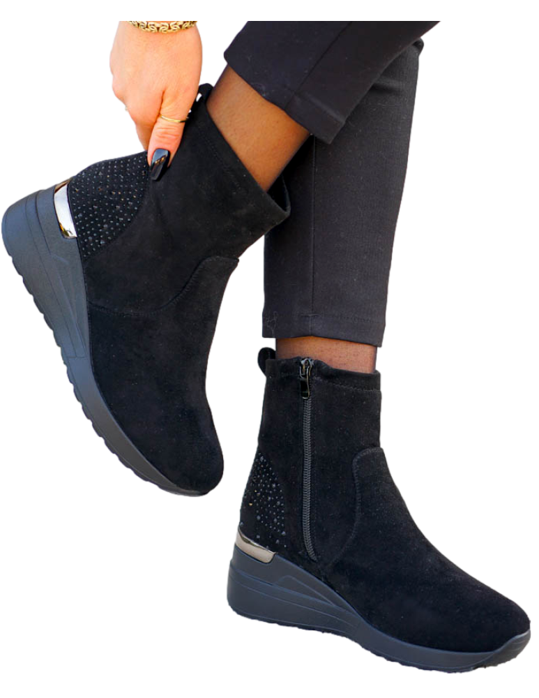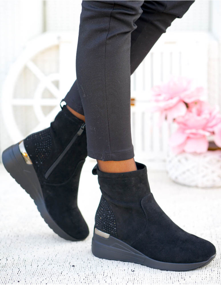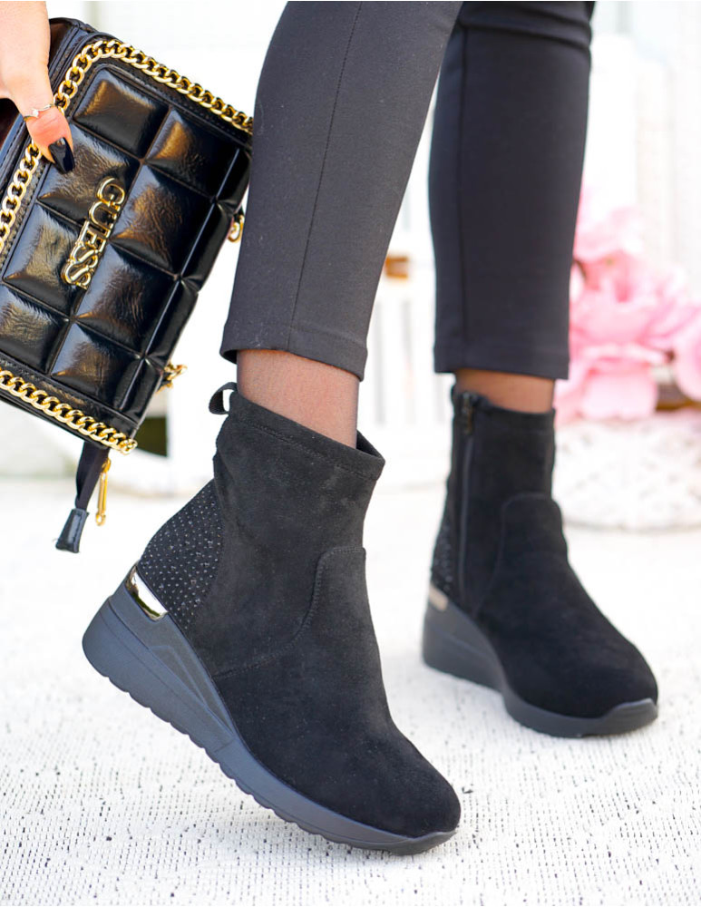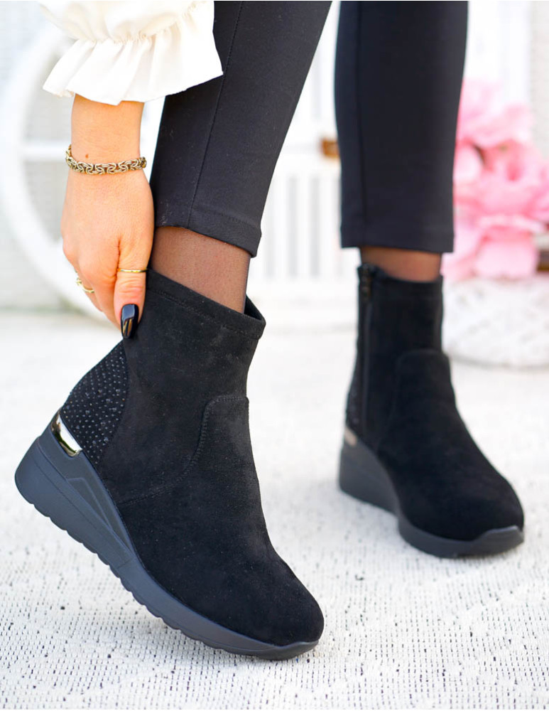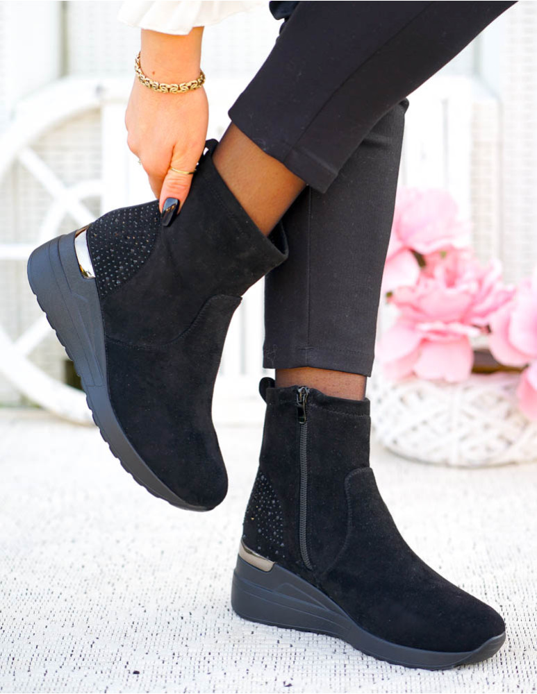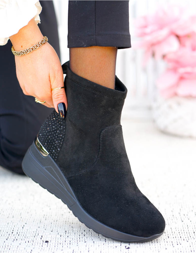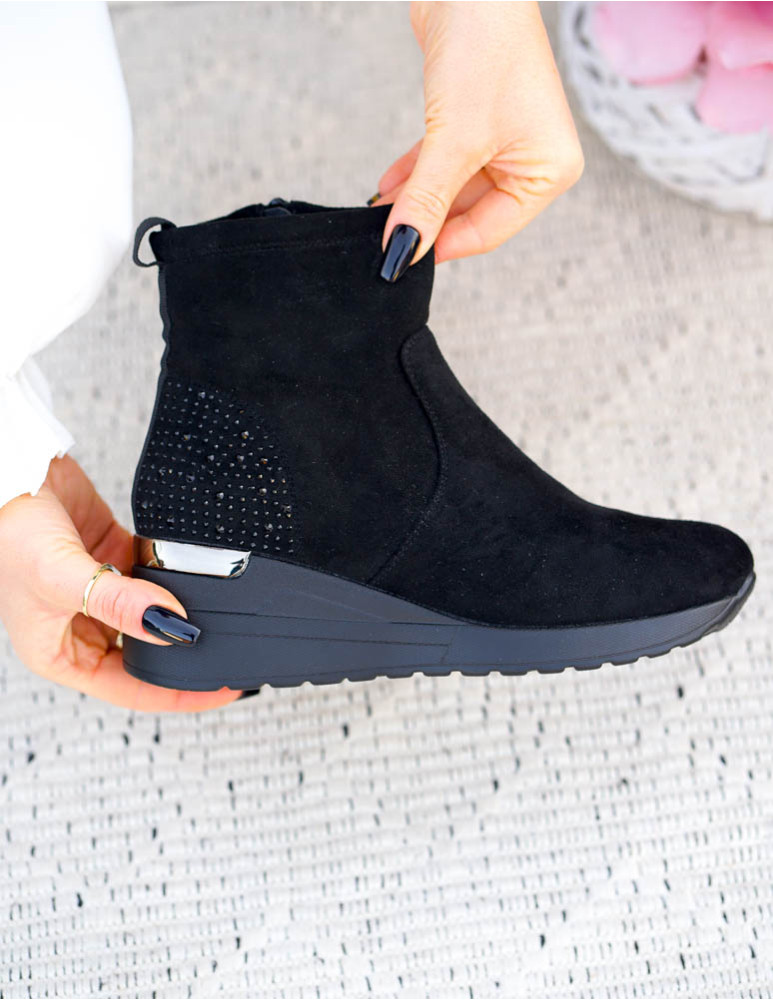 Krótkie Czarne Zamszowe Botki Na Koturnie Save