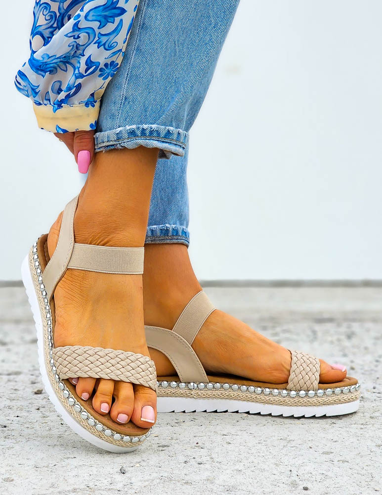 Beżowe Sandały Na Gumki Na Grubej Podeszwie Solley
