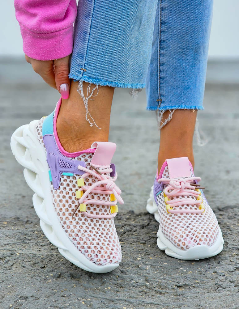 Adidasy dostępne są w białym kolorze z subtelnym pastelowymi wstawkami