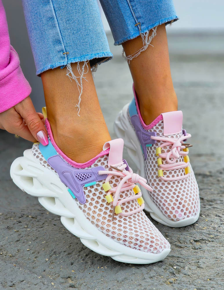 Białe Sneakersy Buty Sportowe Damskie Pink Peach