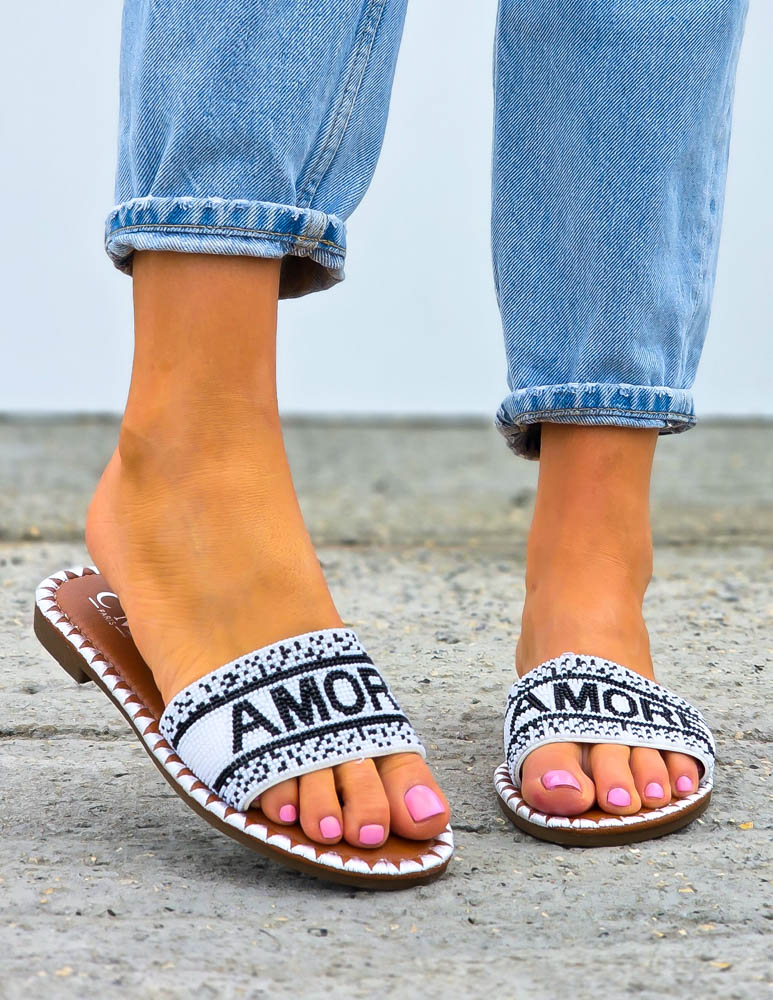 Lekki Klapki Na Płaskiej Podeszwie Amore Białe
