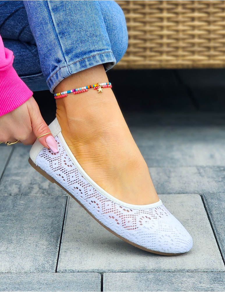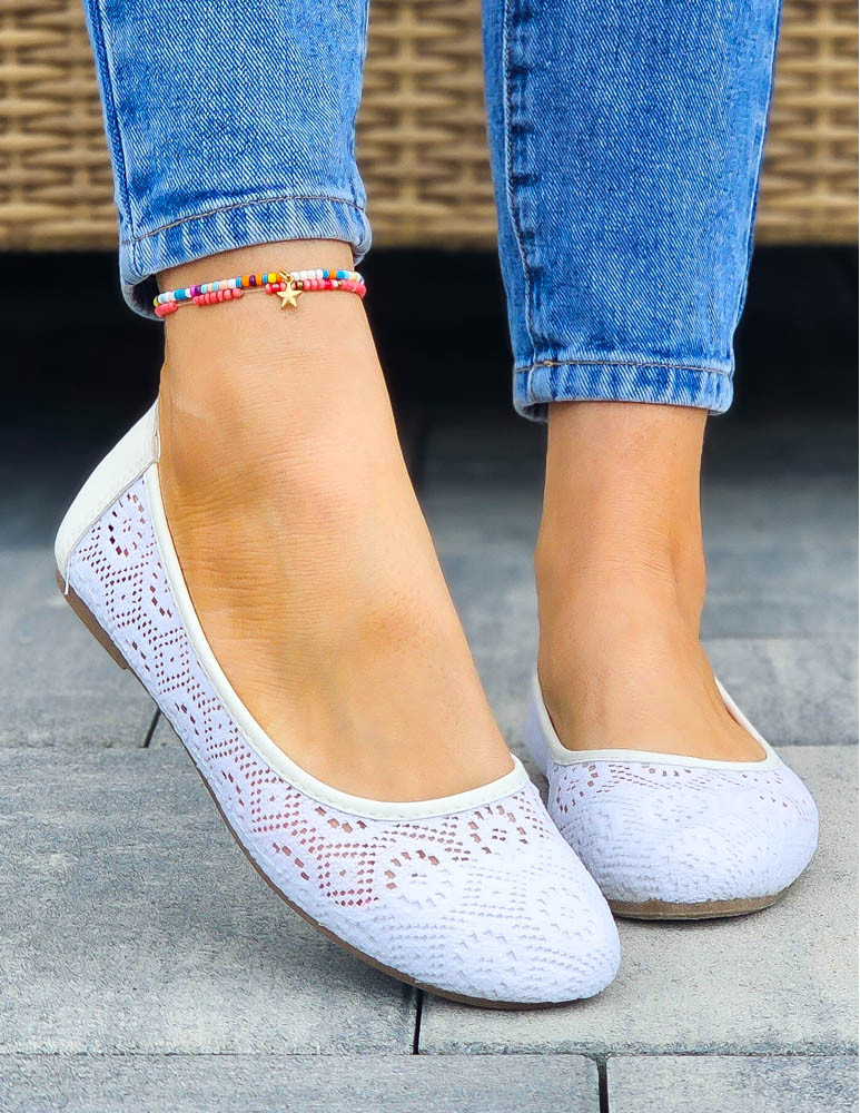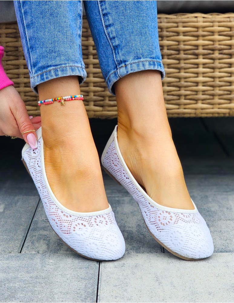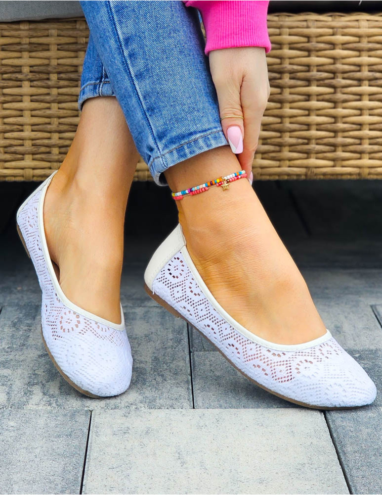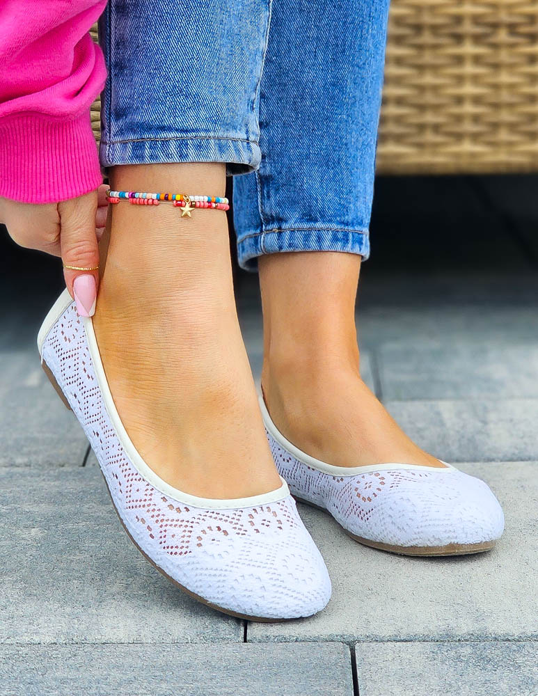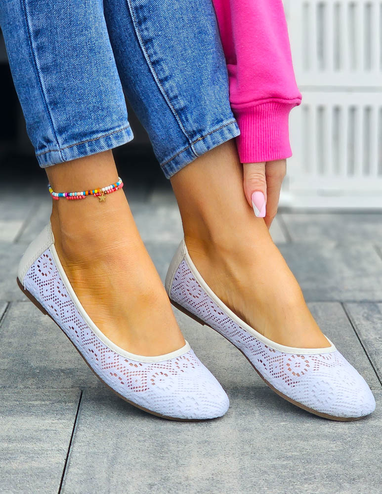 - ❤ Białe, koronkowe, mięciutkie balerinki damskie
