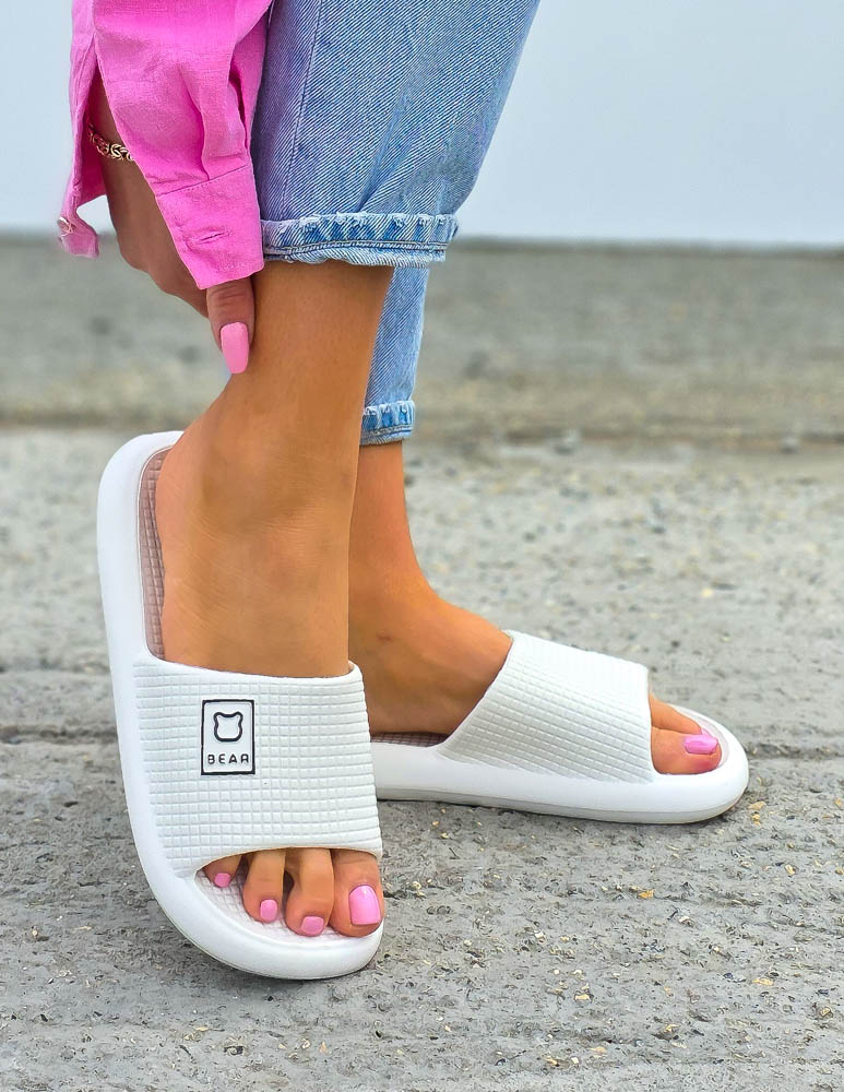 Lekkie Piankowe Klapki Damskie Na Basen Plażę Bear Białe