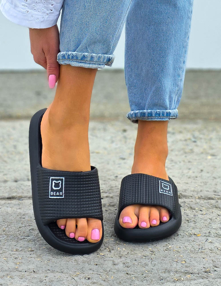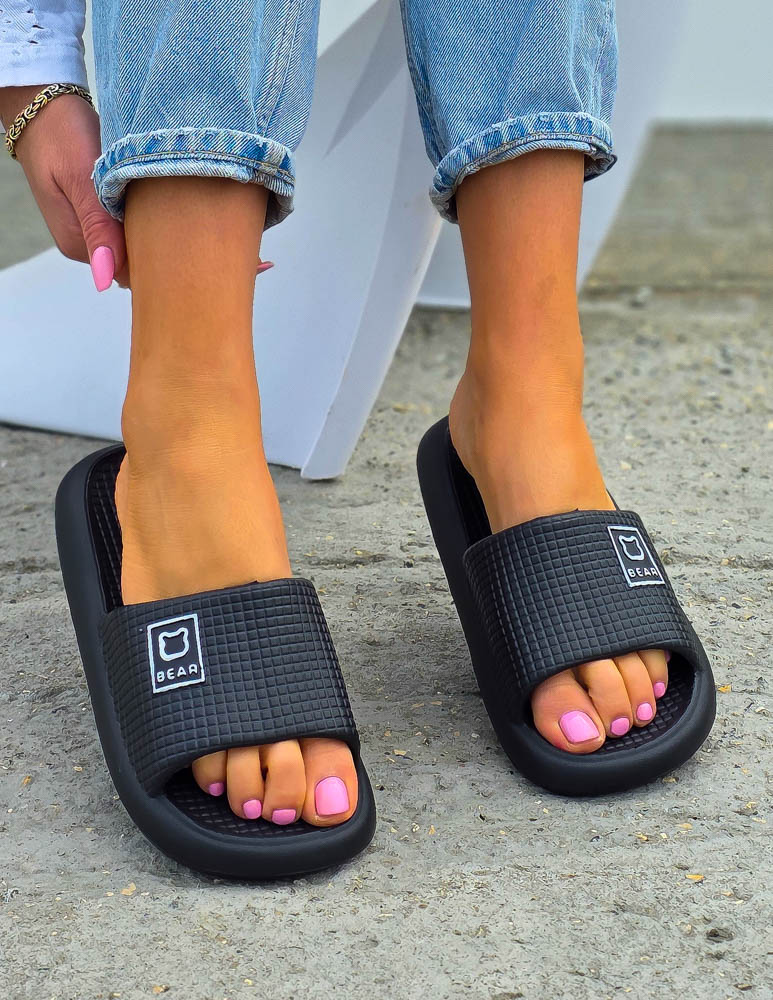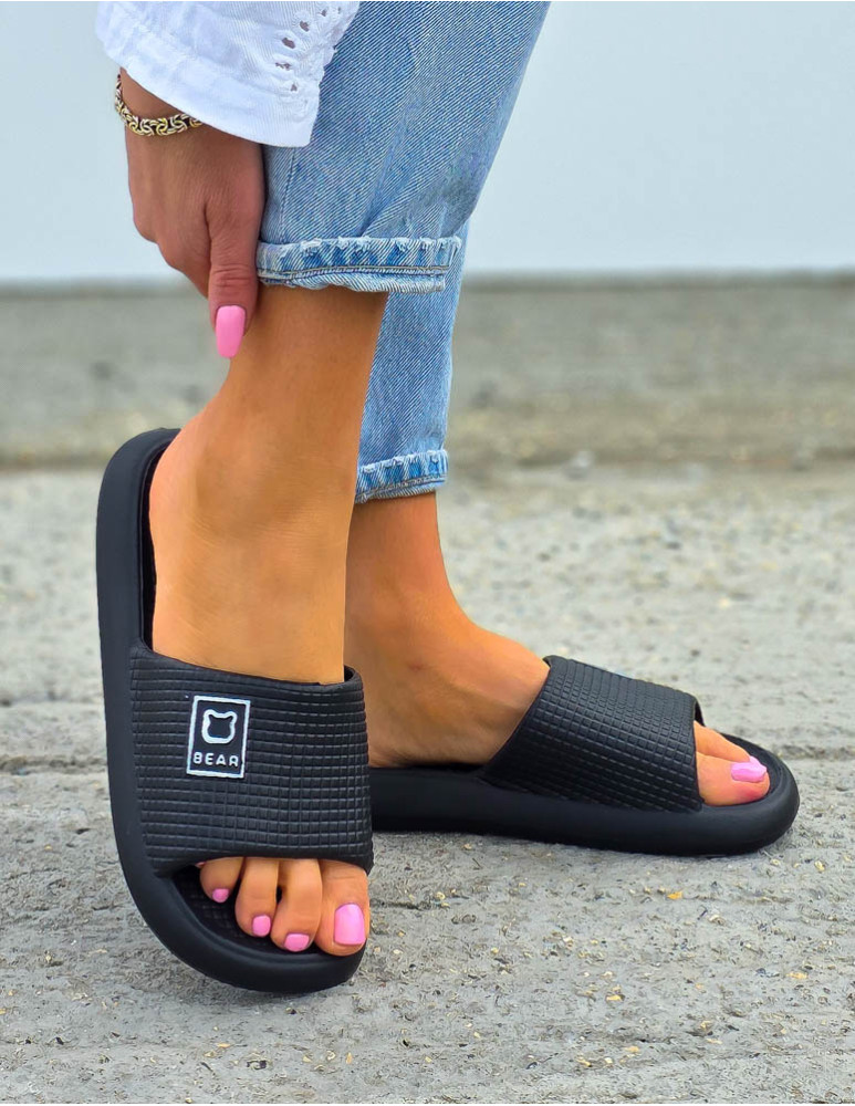 Lekkie Piankowe Klapki Damskie Na Basen Plażę Bear Czarne