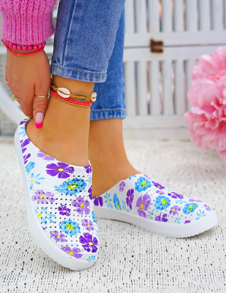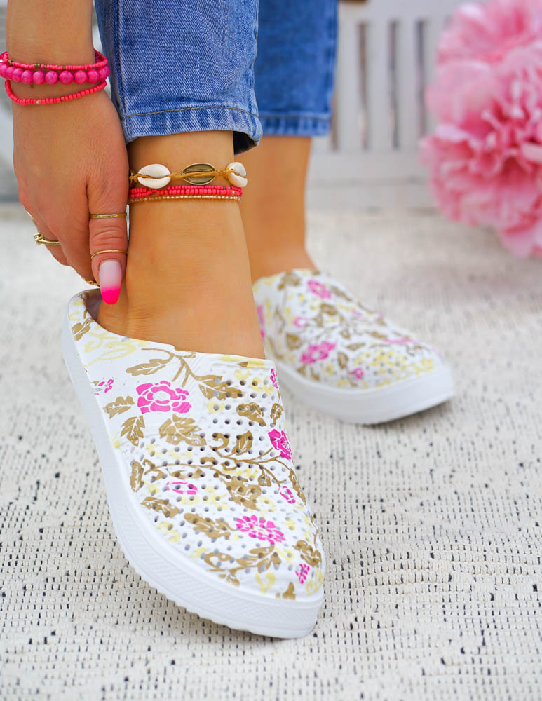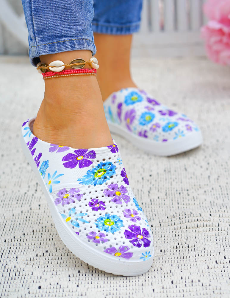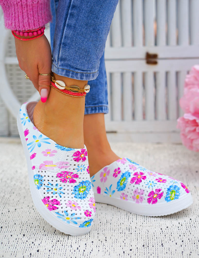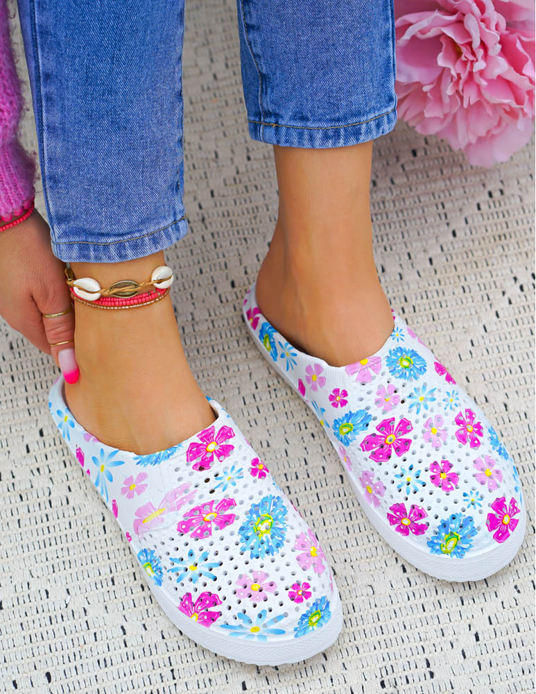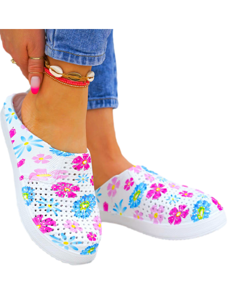 Klasyczne piankowe klapki dostępne są w kolorze biało-niebieskim, biało-różowym