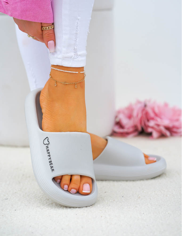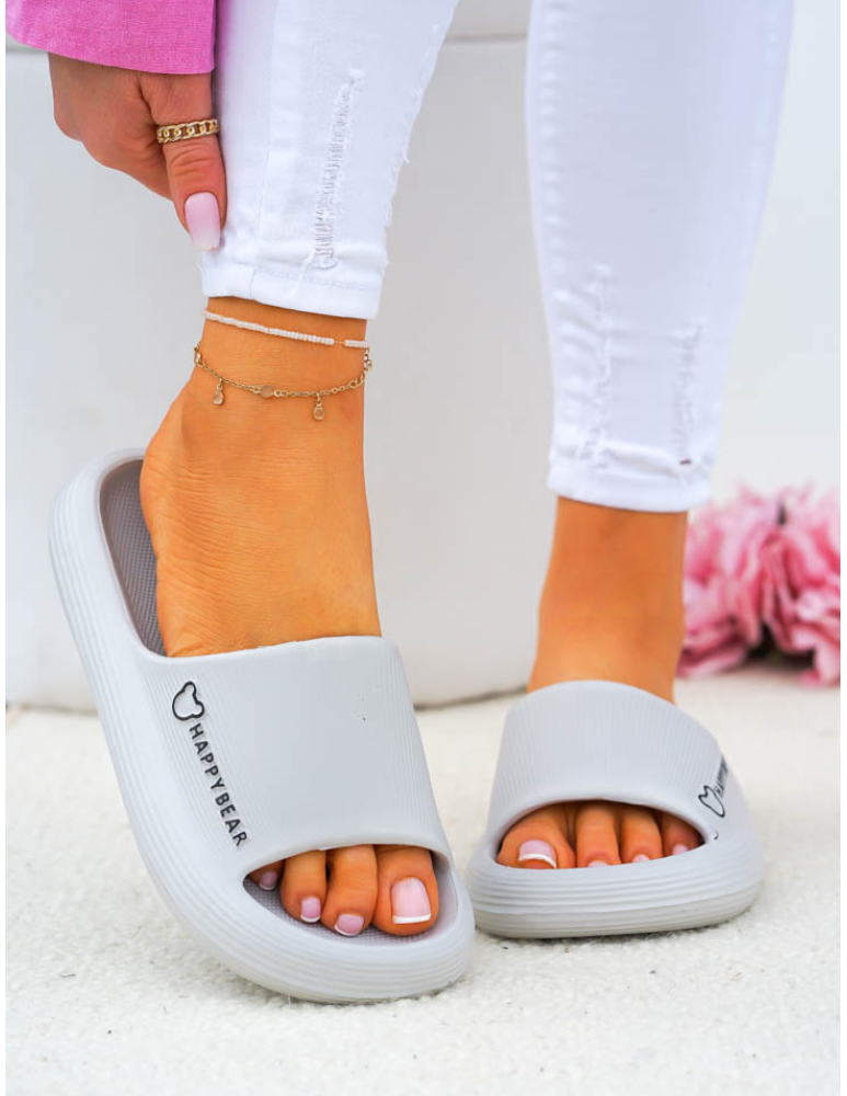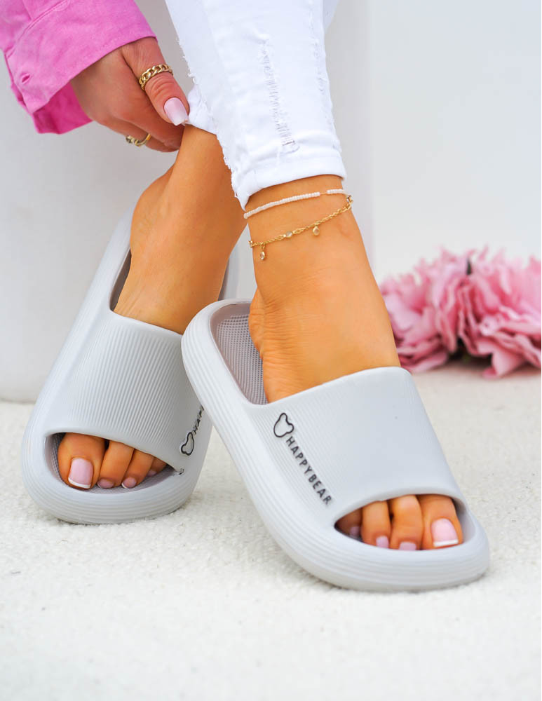 Lekkie Piankowe Klapki Na Grubej Podeszwie Happy Szare