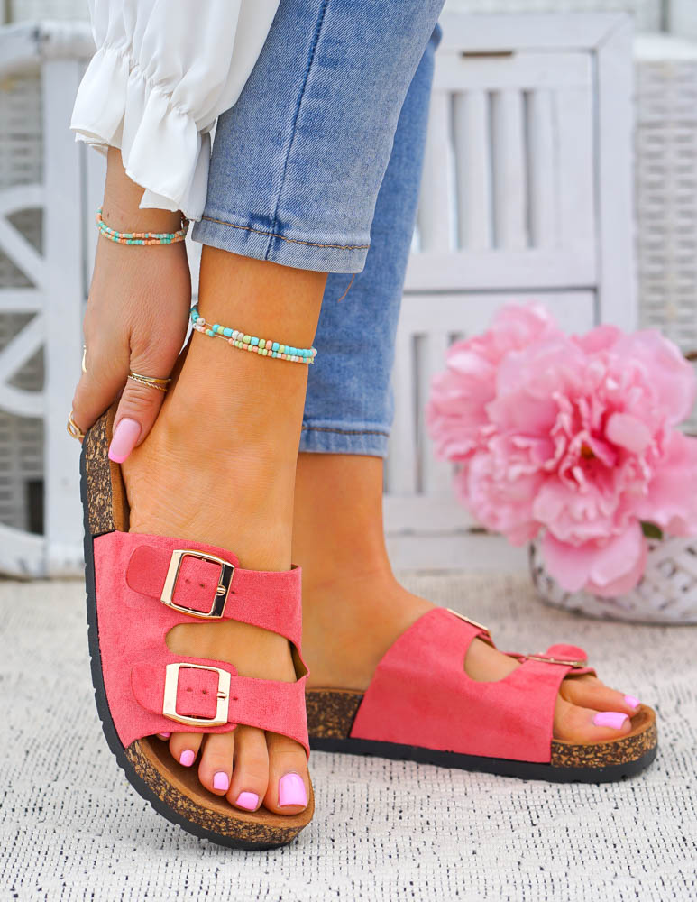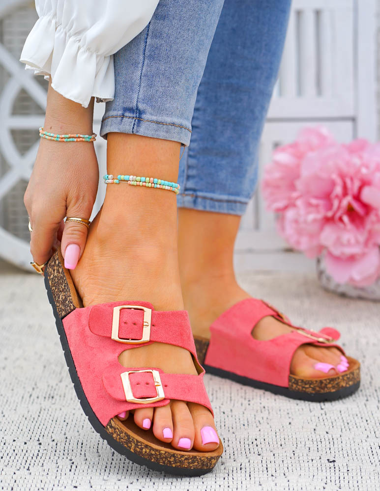 ❤Jasno-czerwone klapki na korkowej podeszwie