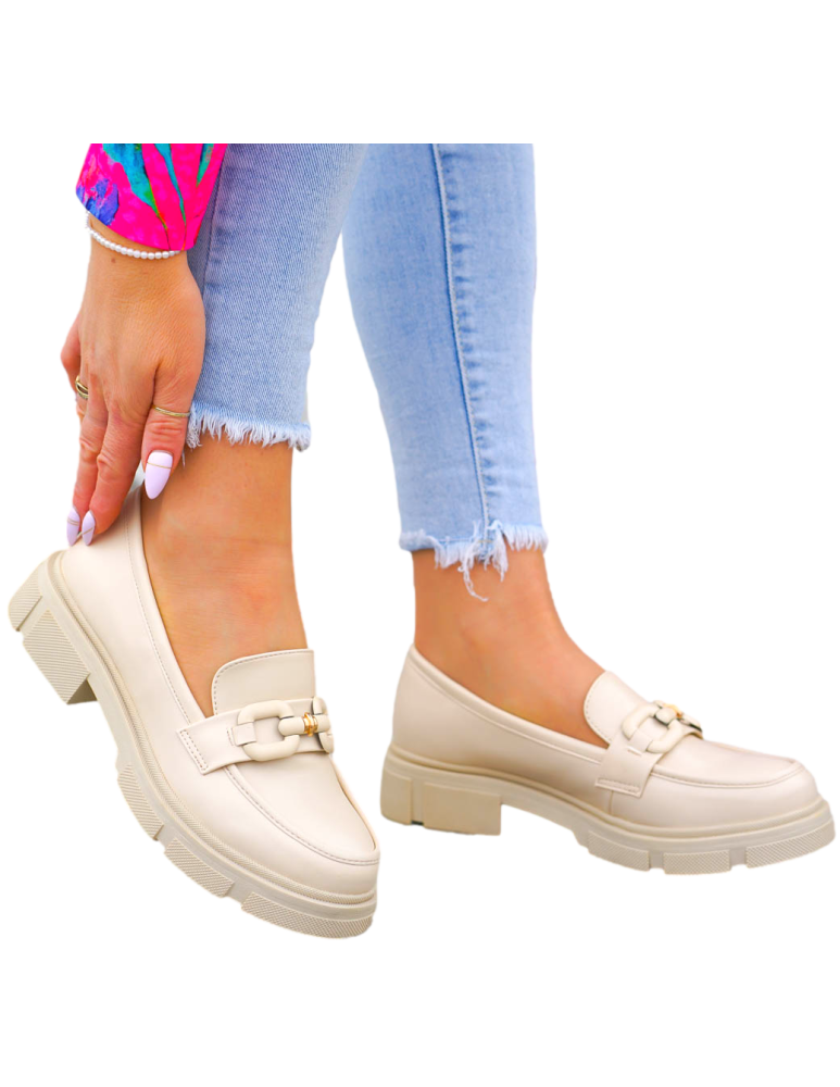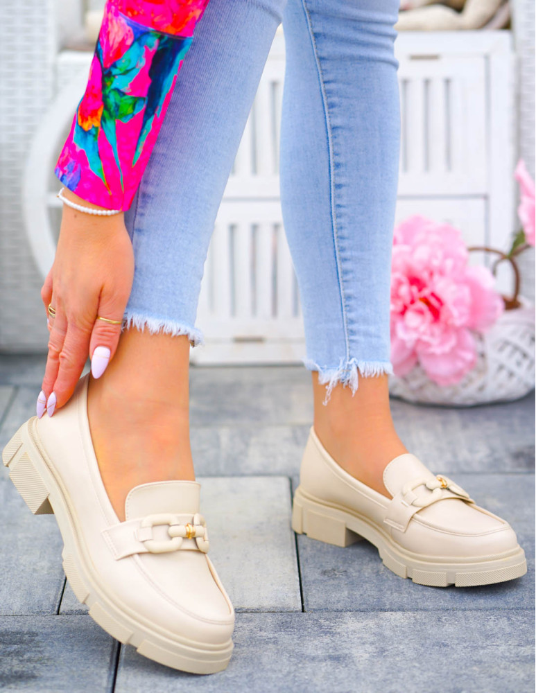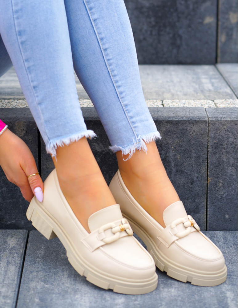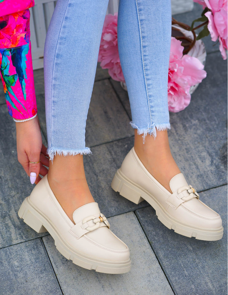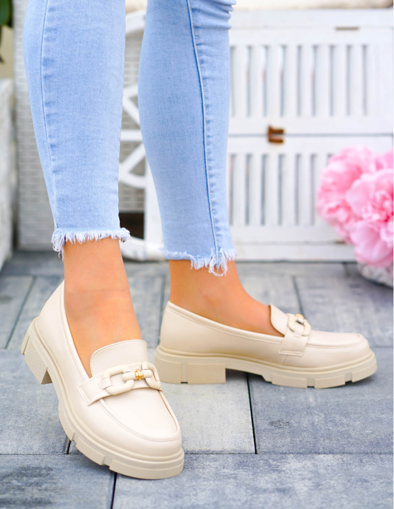Beżowe Mokasyny Na Grubej Podeszwie Ze Skóry Malme