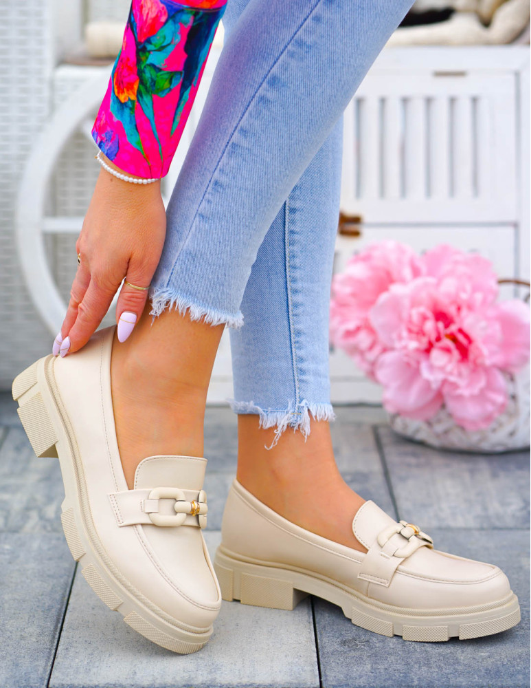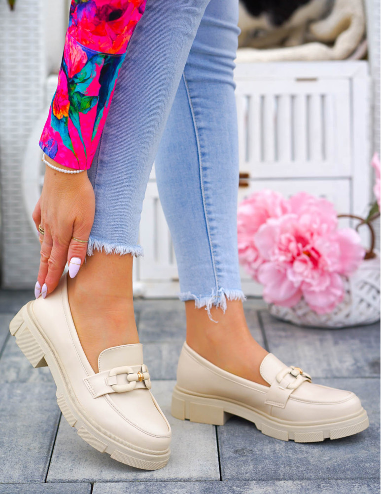 ❤Beżowe mokasyny z matowej eco skóry