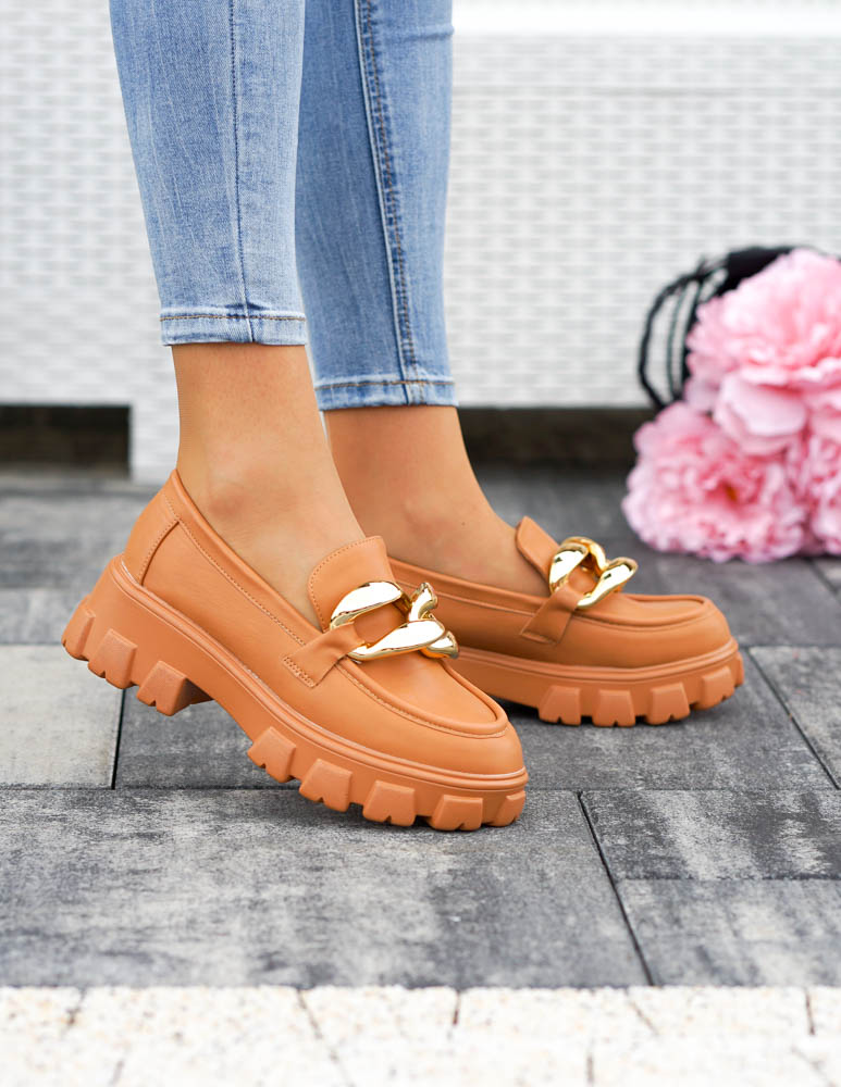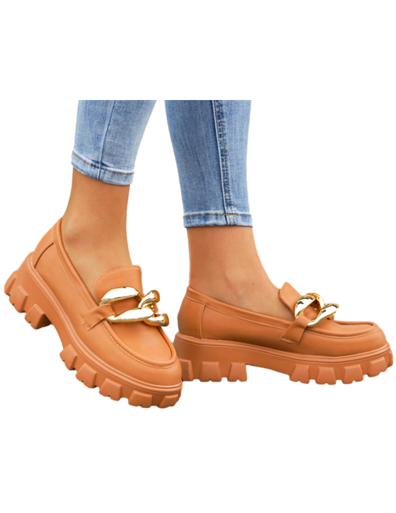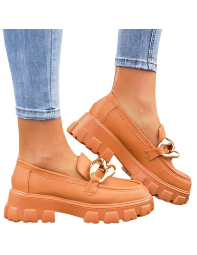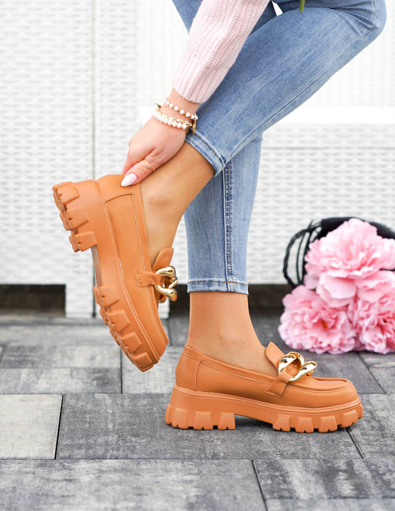 Brązowe Mokasyny Półbuty Na Grubej Podeszwie Łńcuch