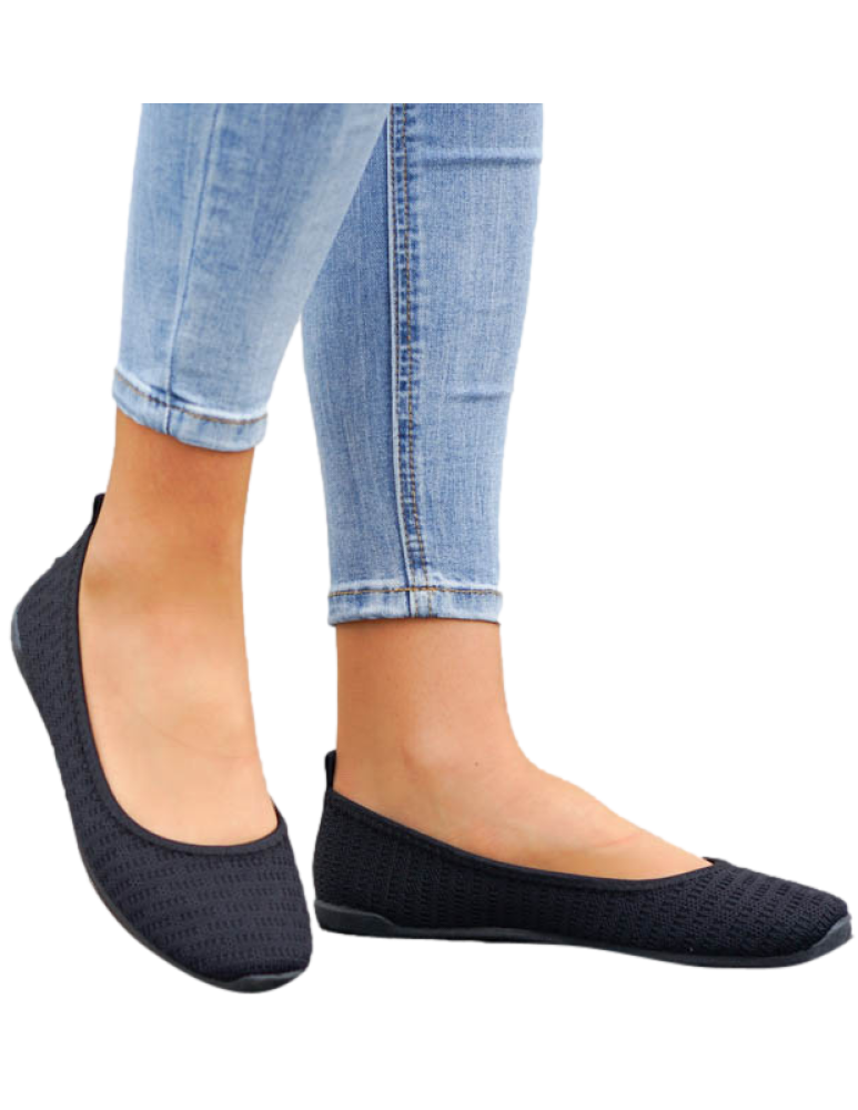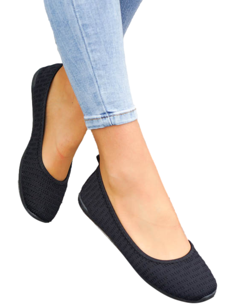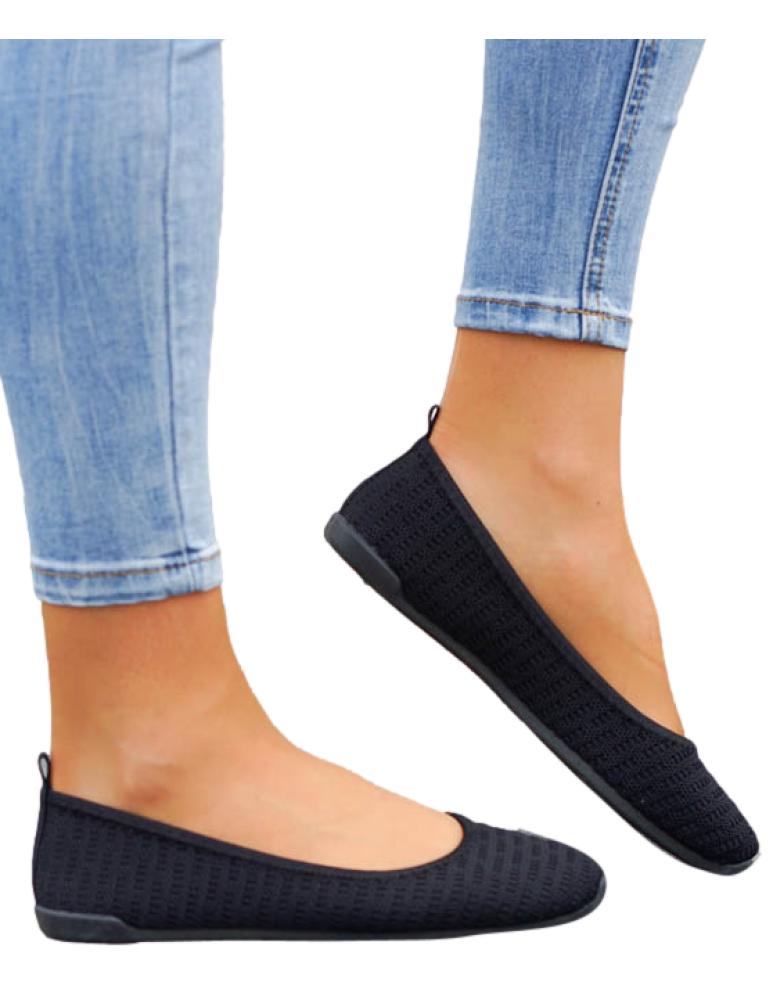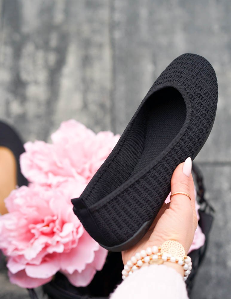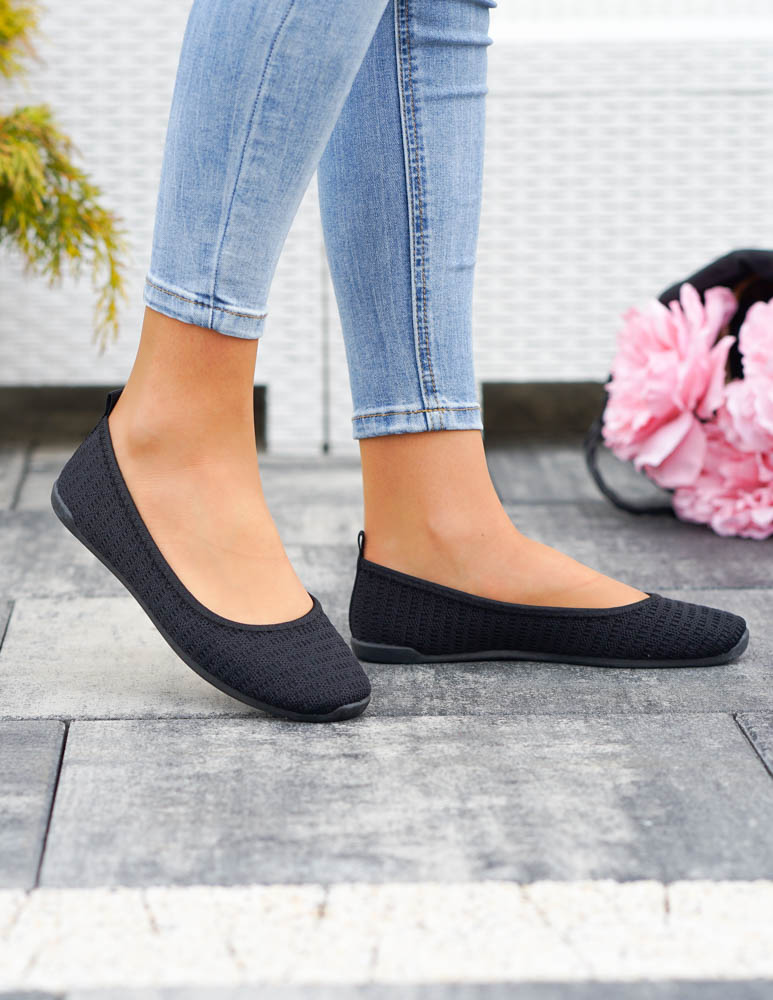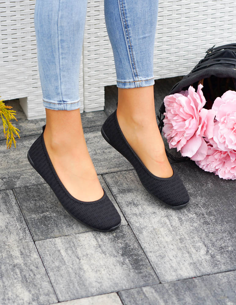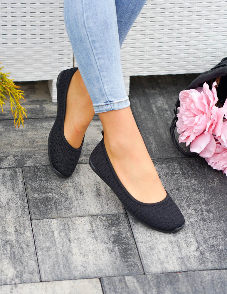 Czarne Sportowe Ażurowe Balerinki Mięciutkie