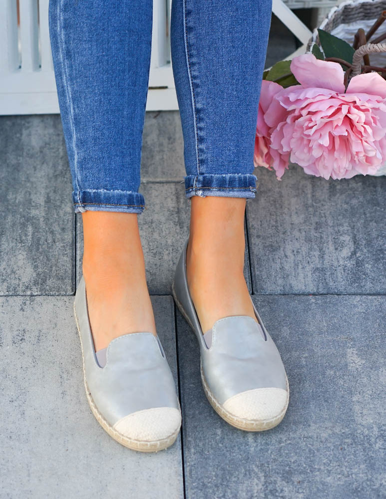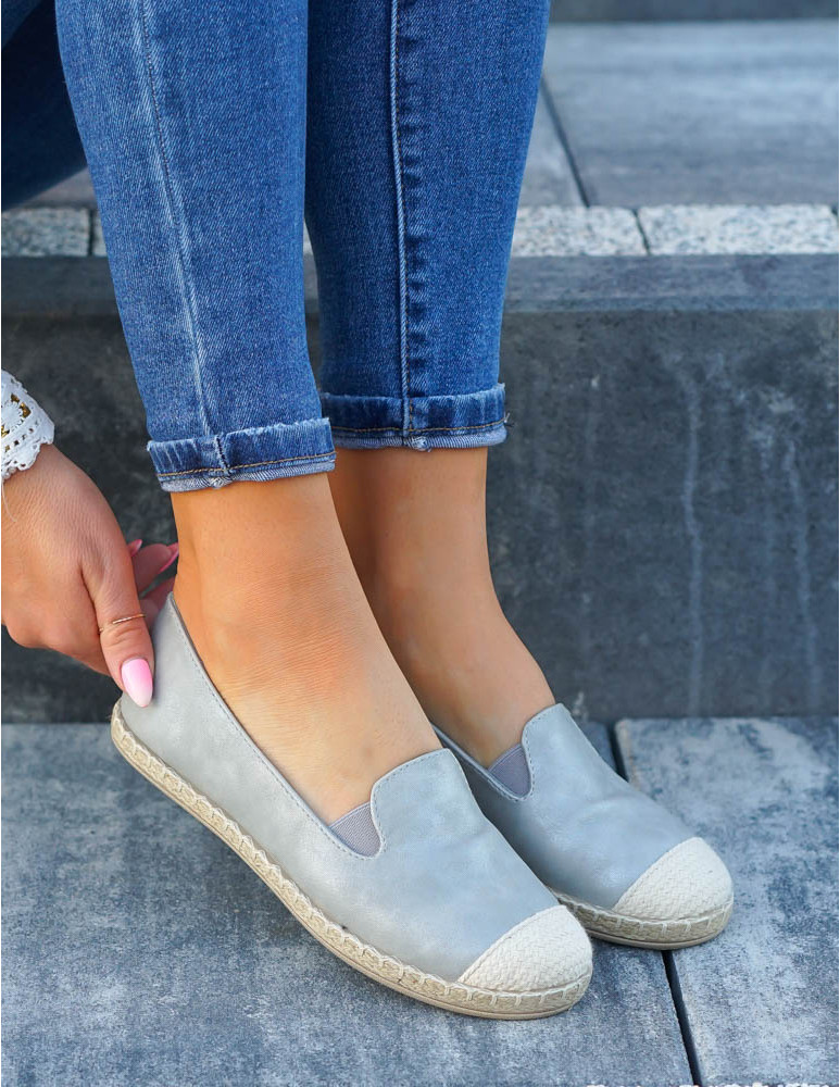 Szare Espadryle Balerinki Damskie Z Eco Skóry