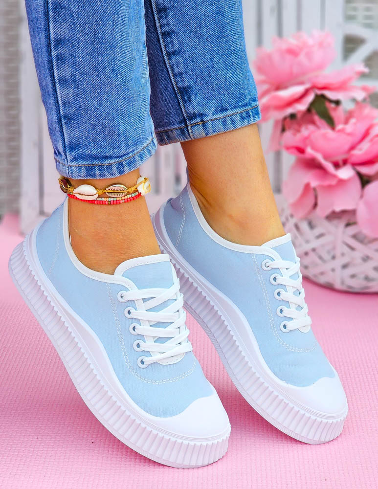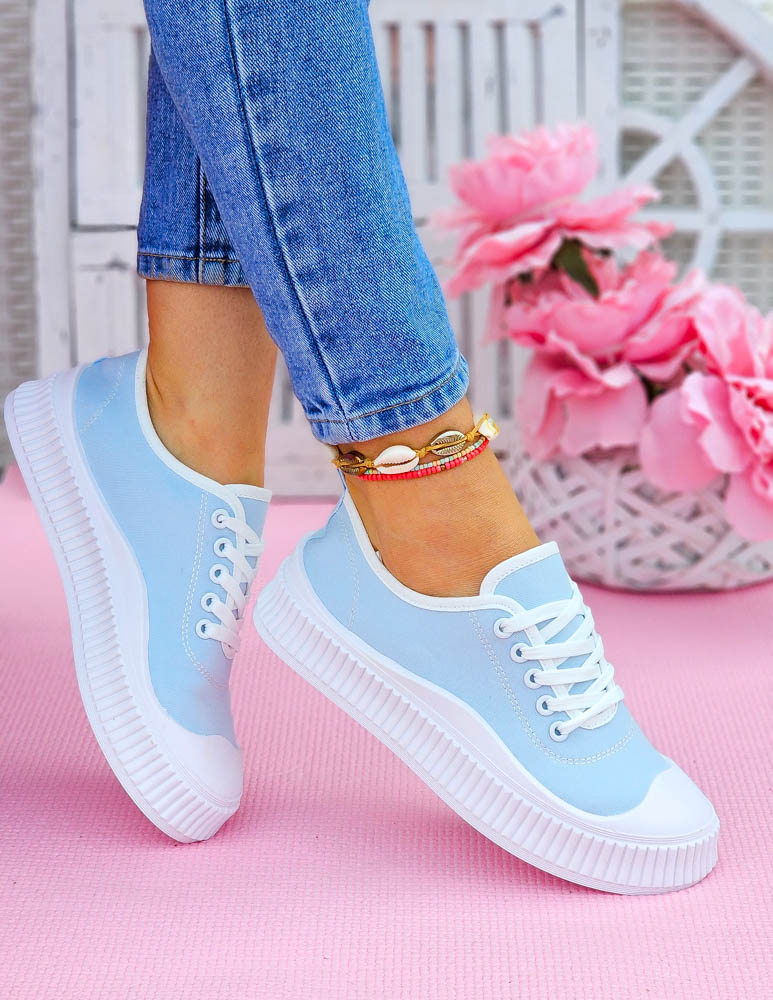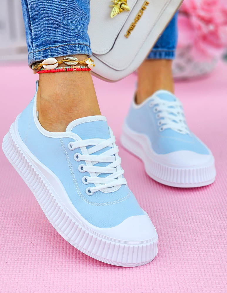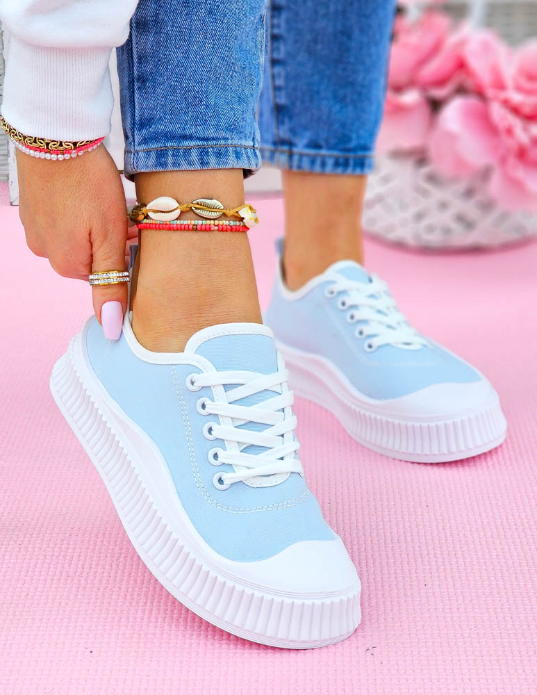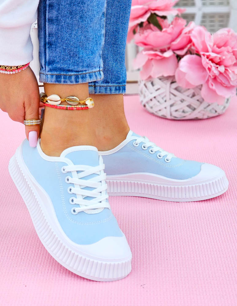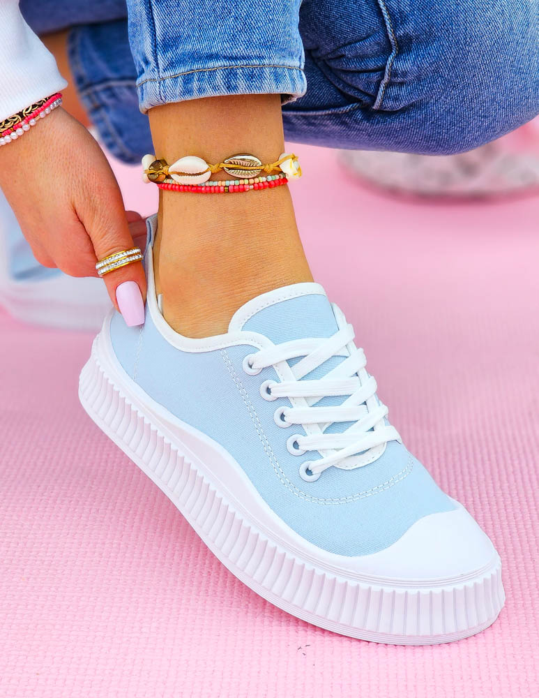 Idealne do letnich stylizacji, modne trampki, w pięknym jasno-niebieskim kolorze
