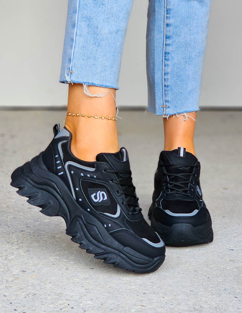 Czarne Buty Sportowe Sneakersy Na Platformie Sketchars