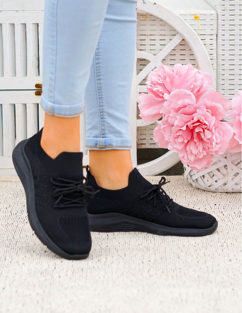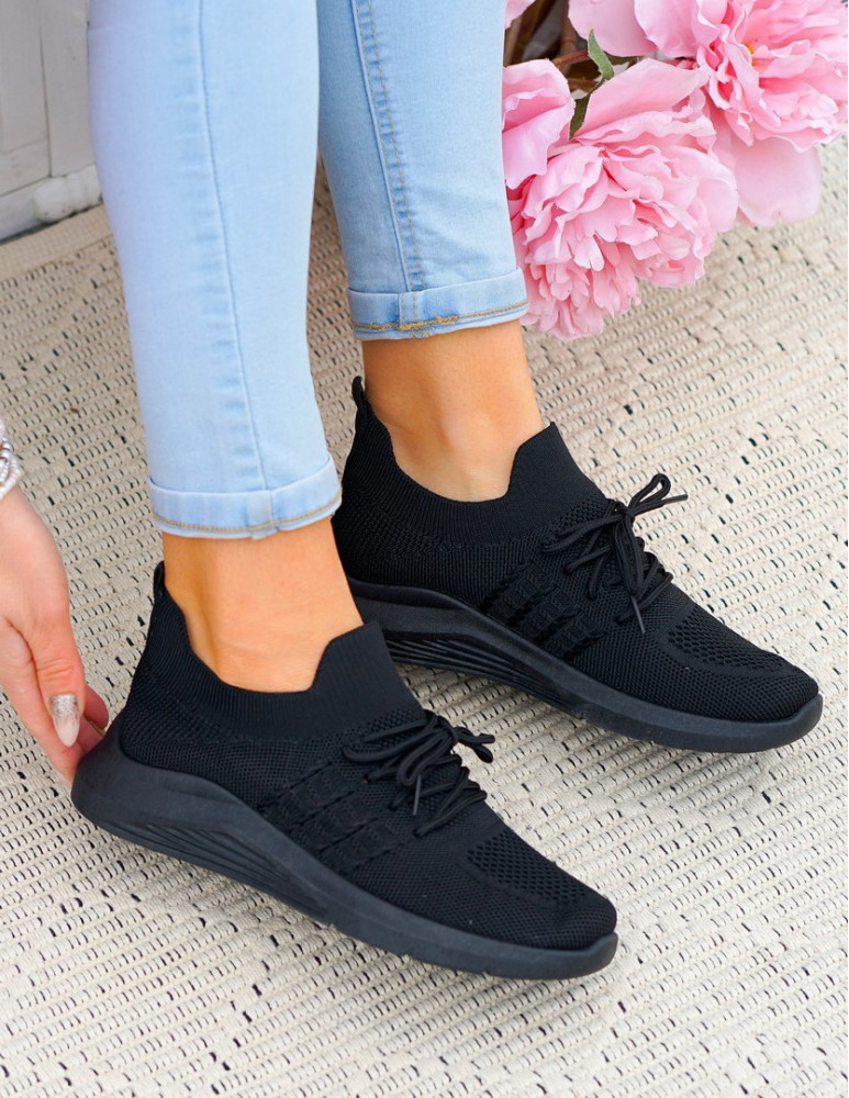 Klasyczne Czarne Lekkie Buty Sportowe Lycra Trampki