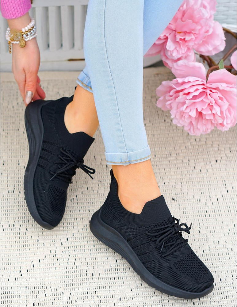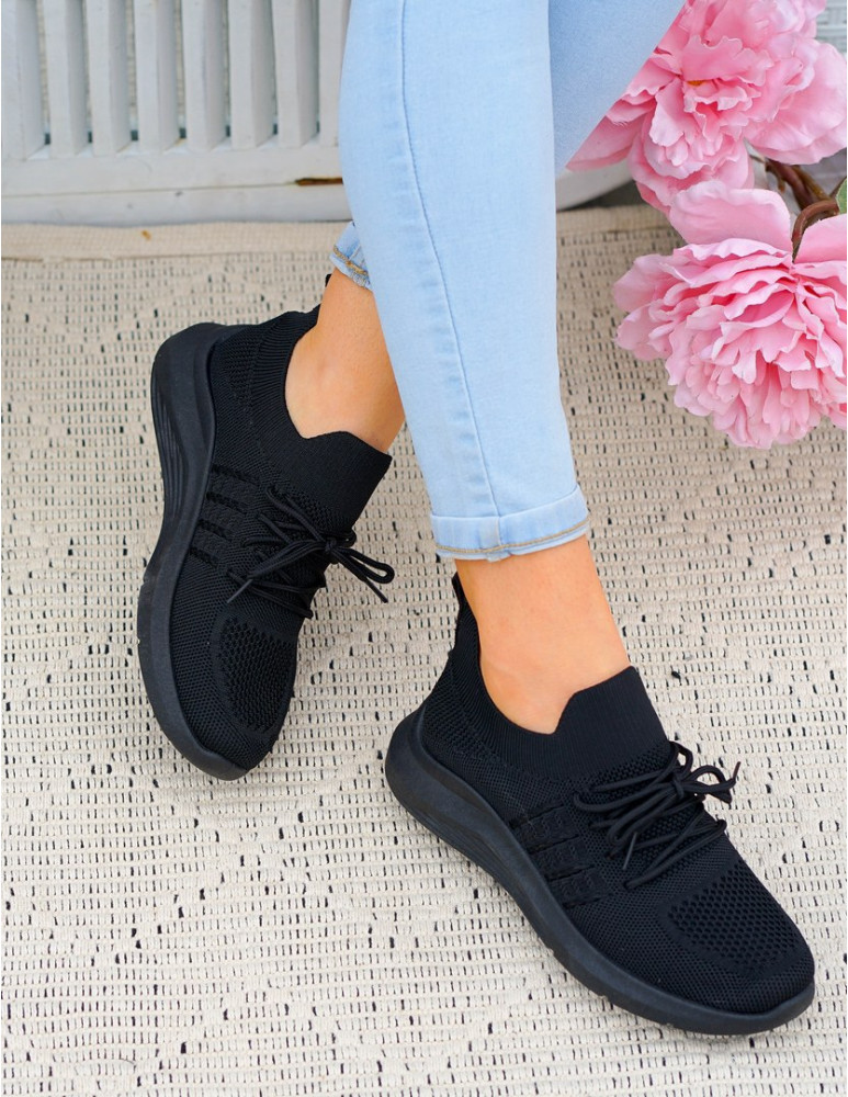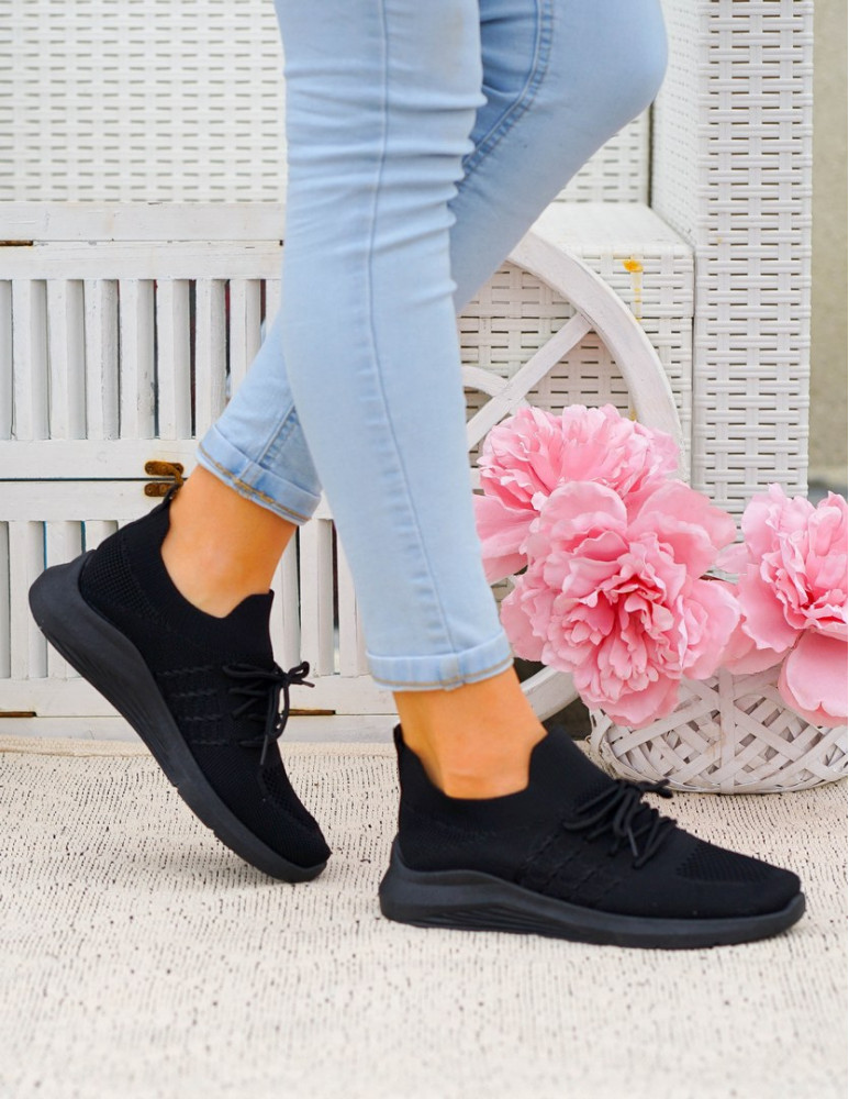 Czarne Lekkie Buty Sportowe Wsuwane Elastyczne Nina