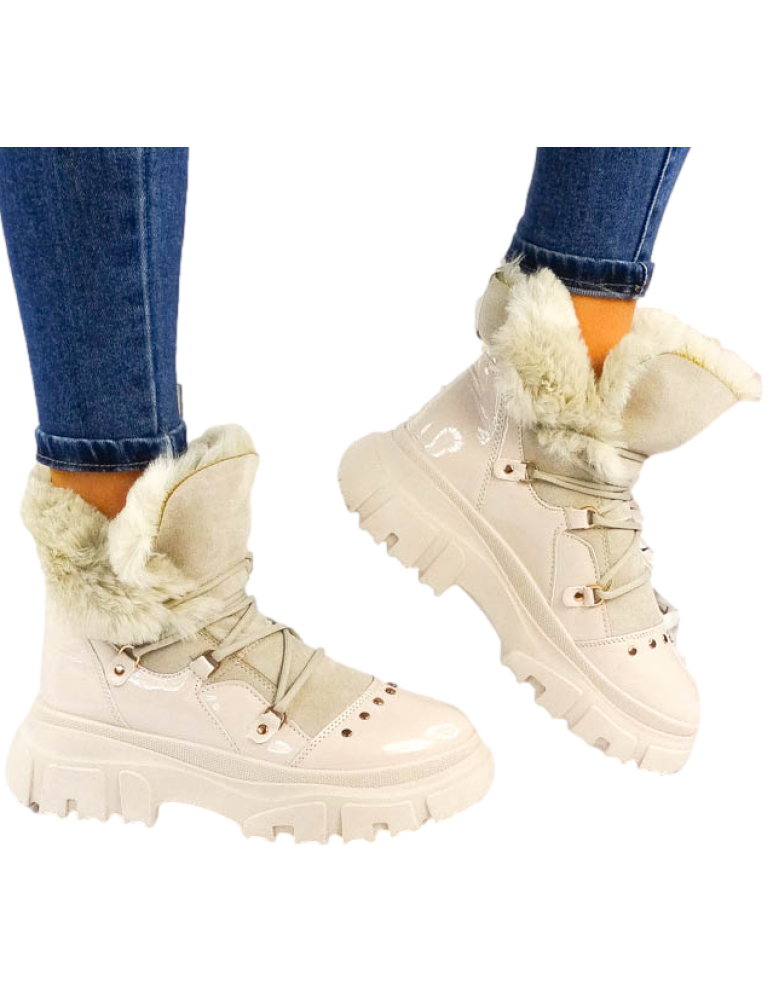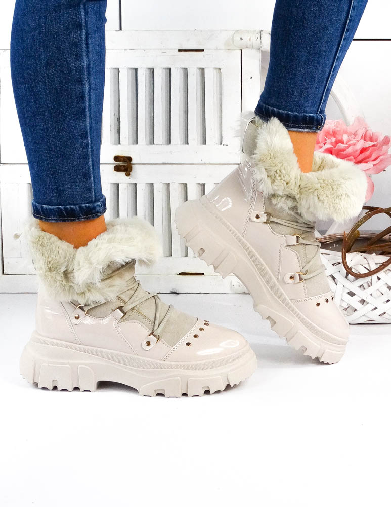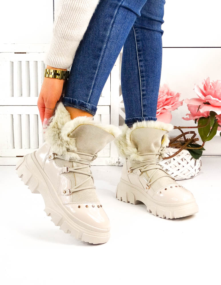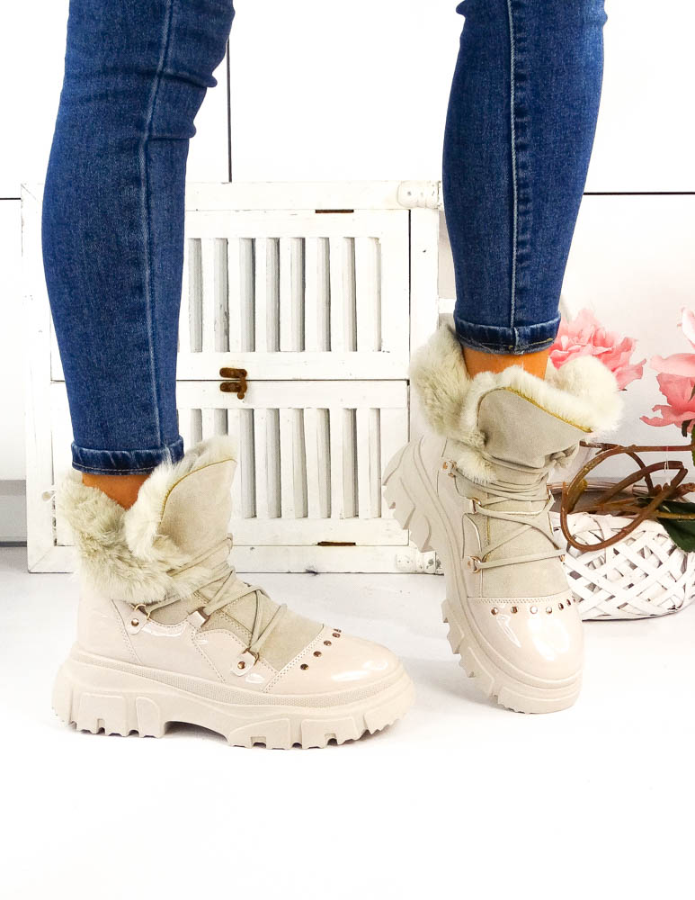 - Kod produktu: Ocieplane Śniegowce Botki Sportowe Buty Trapery Beżowe
