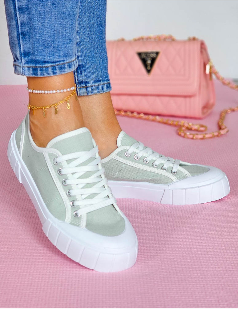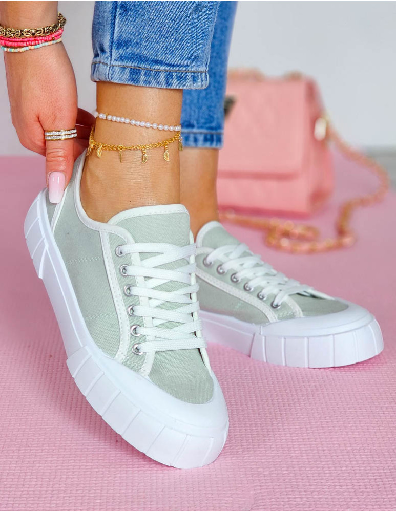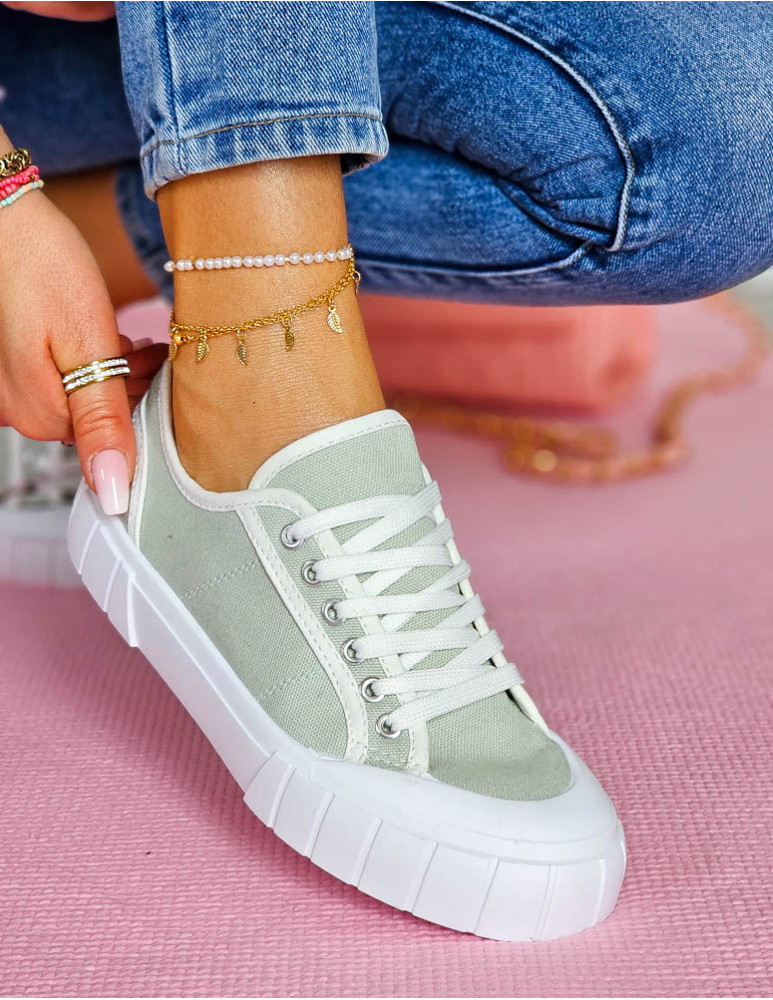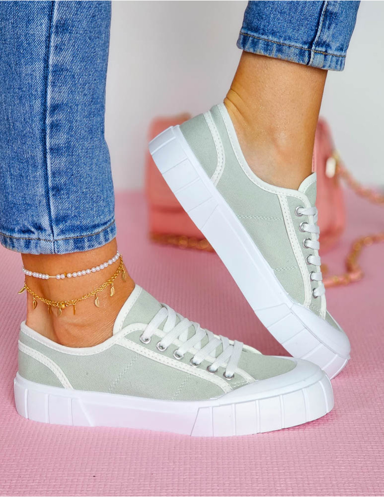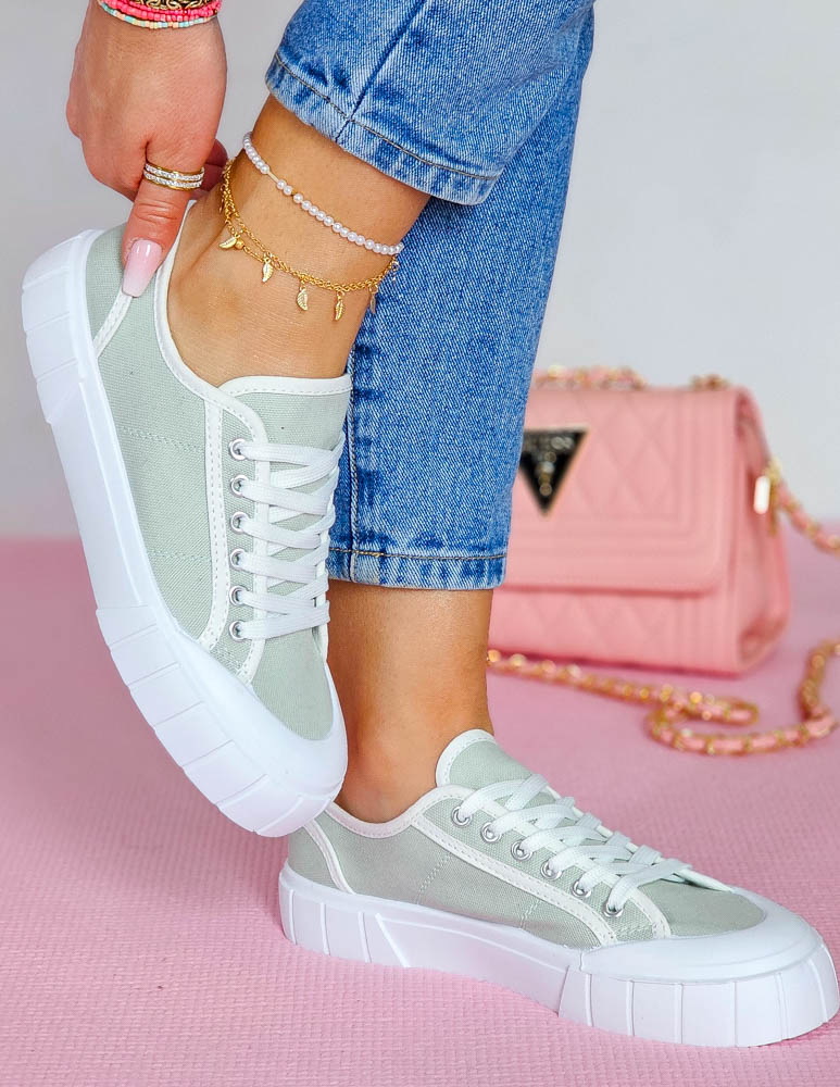 Oliwkowe Trampki Damskie Na Grubej Podeszwie Leves