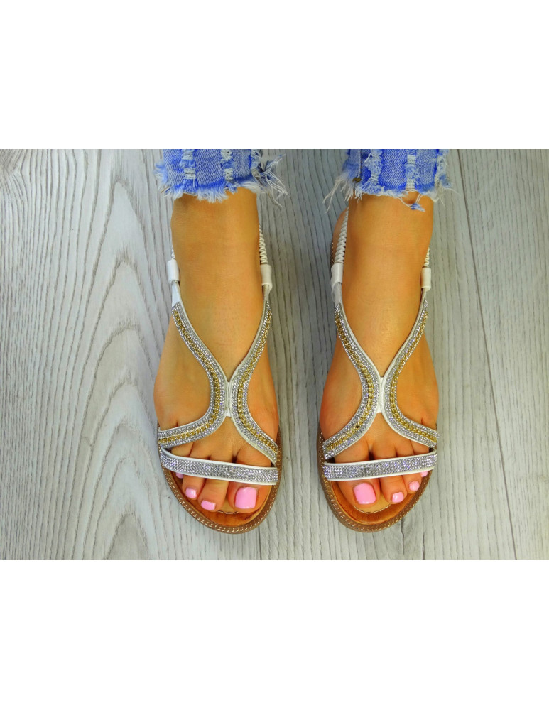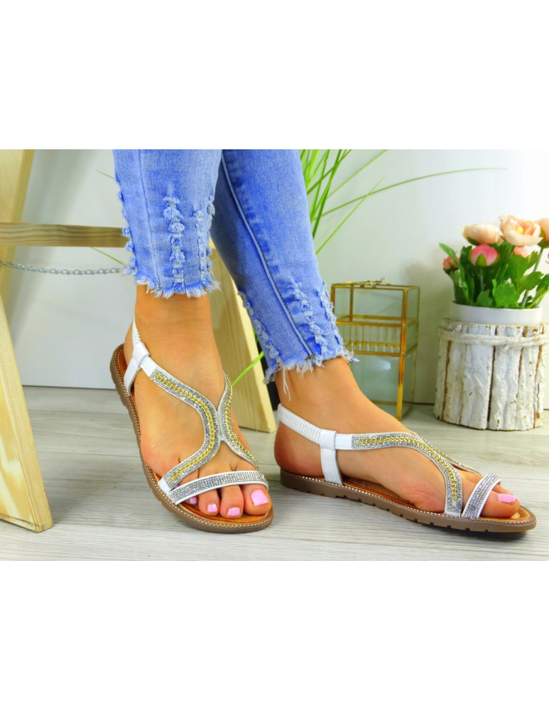 • Kod produktu: -Płaskie Białe Sandały Mieniące