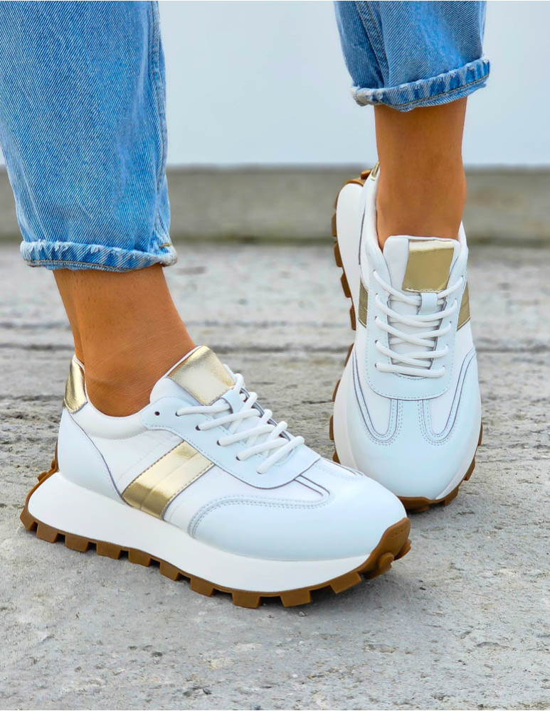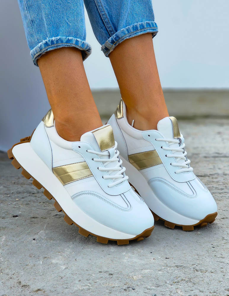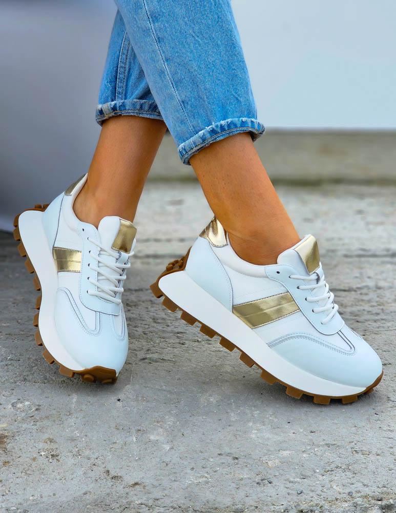 Biało-Złote Sneakersy Buty Sportowe Damskie Lus Vittron
