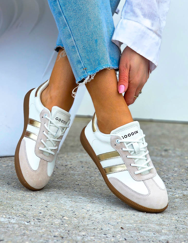 Biało-Złote Sneakersy Buty Sportowe Damskie Lus Vittron