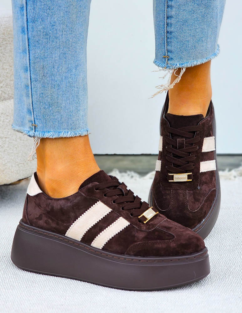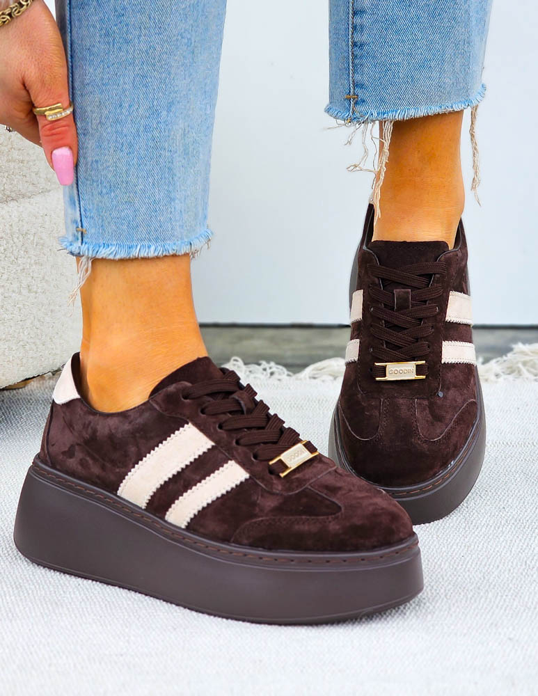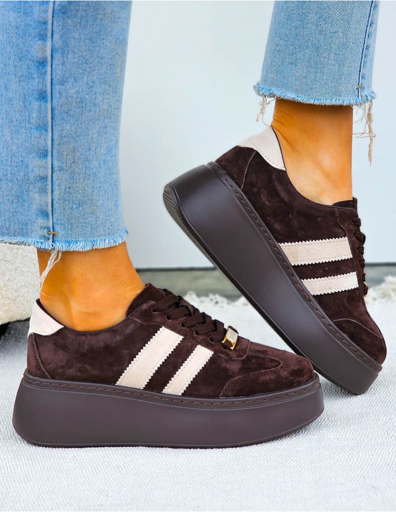 Premium Czekoladowe Skórzane Sportowe Półbuty Trampki Alissia