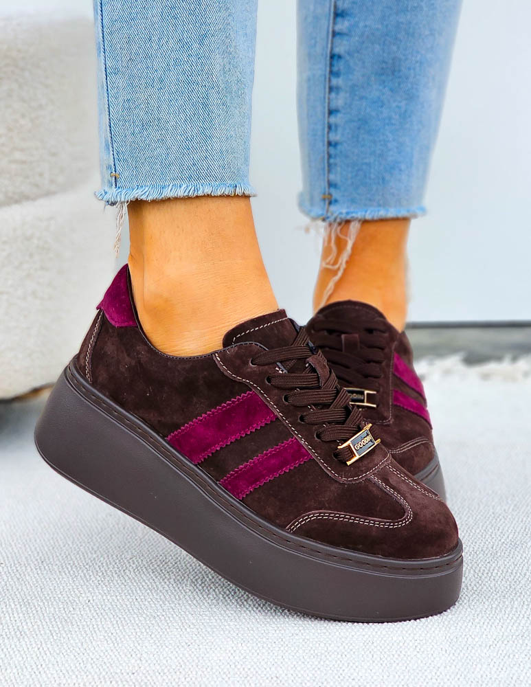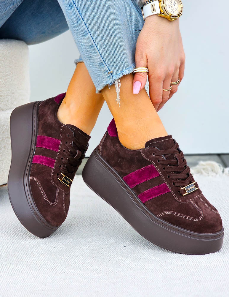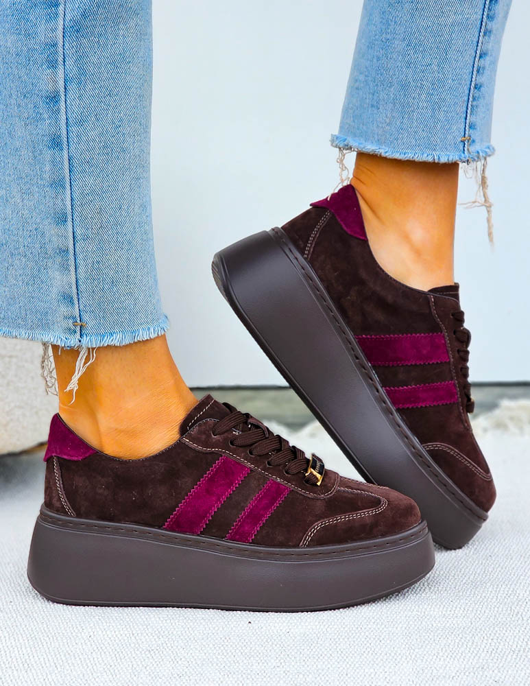 Premium Czekoladowe Skórzane Sportowe Półbuty Trampki Eleya