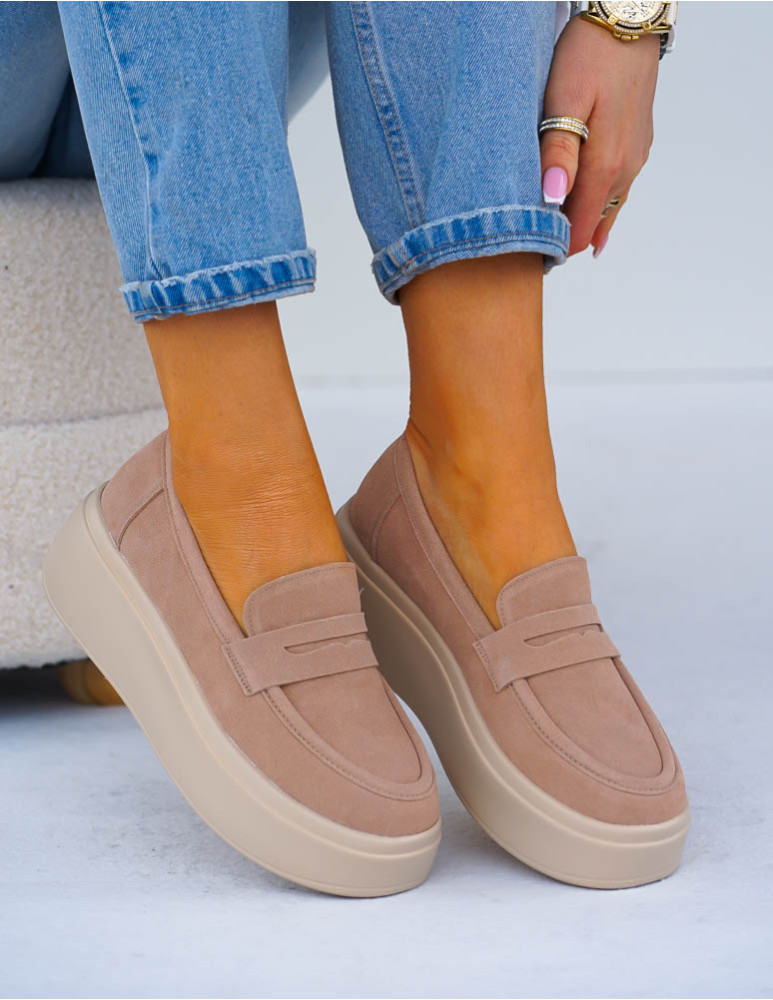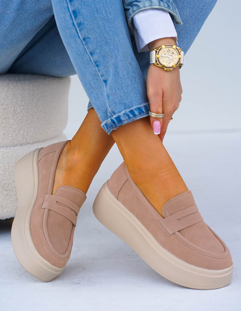 Premium Skórzane Półbuty Na Grubej Podeszwie Beżowe She