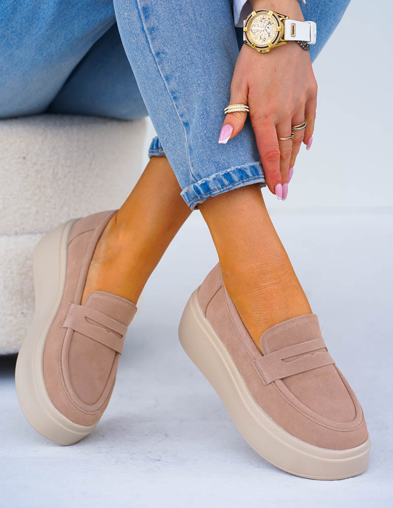 - Kod produktu: Premium Skórzane Półbuty Na Grubej Podeszwie Bezowe She