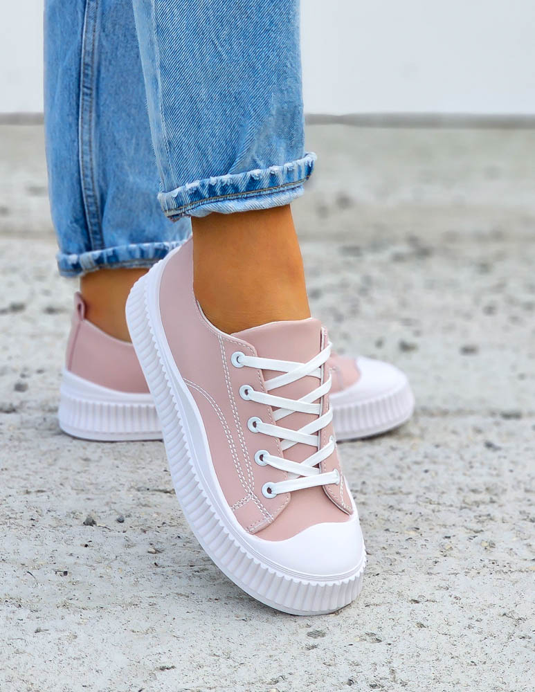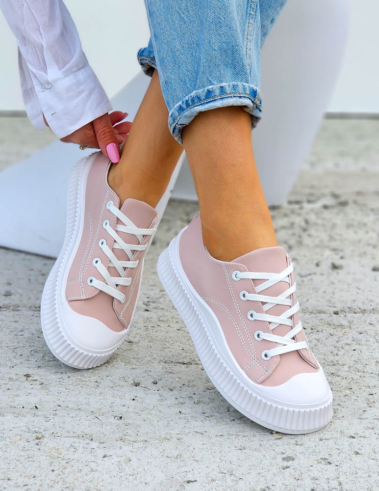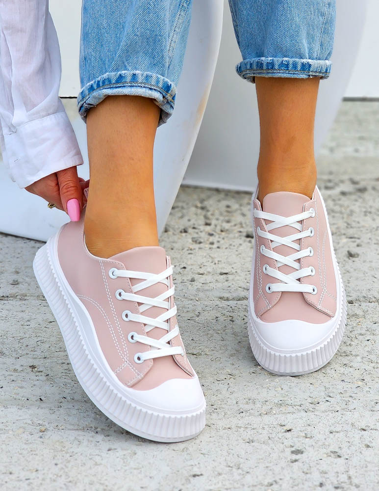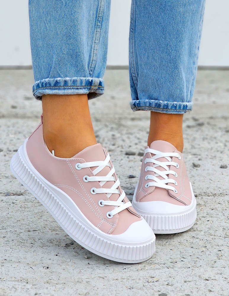 - ❤ Pudrowe-różowe, klasyczne trampki z eco skóry