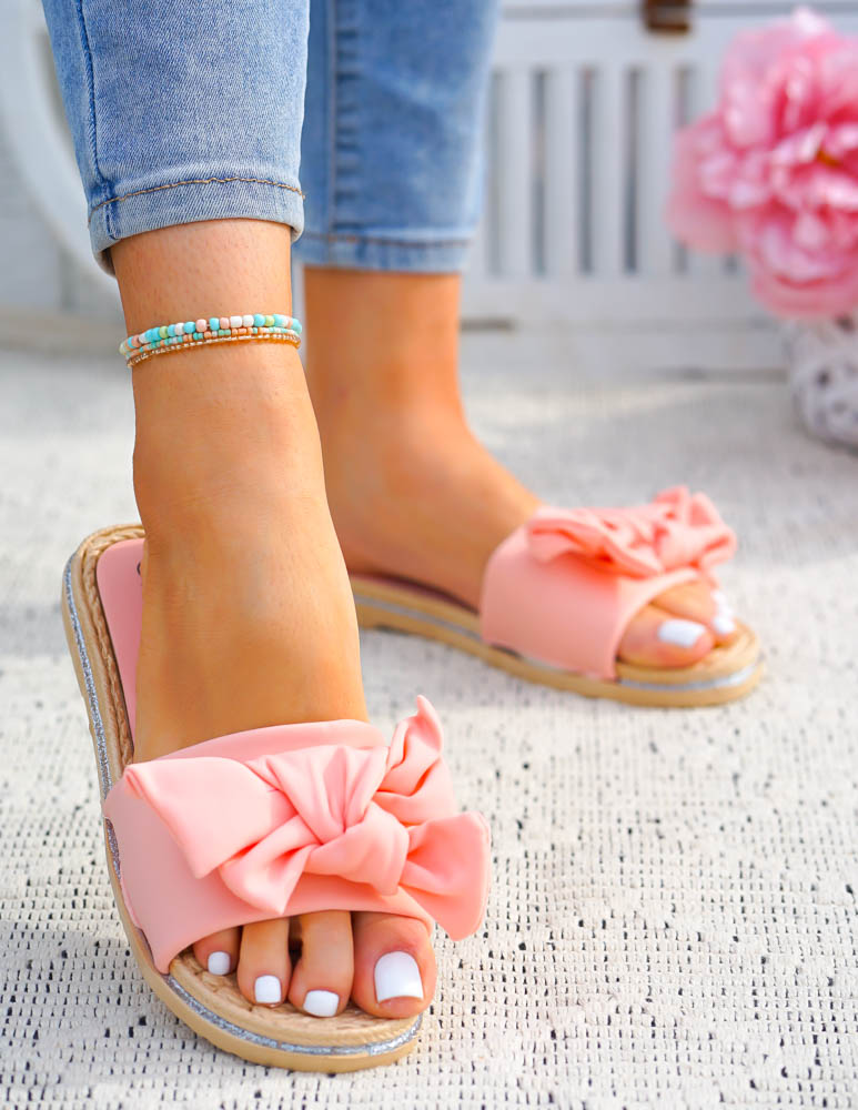 Różowe Lekkie Klapki Z Kokardą Natalie