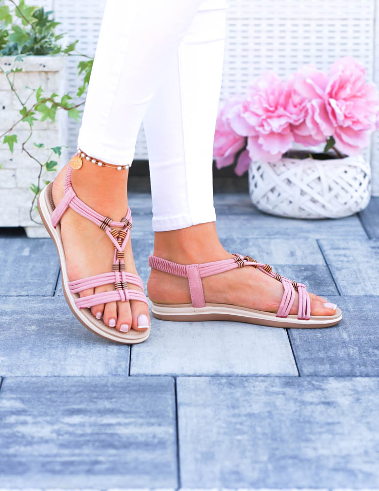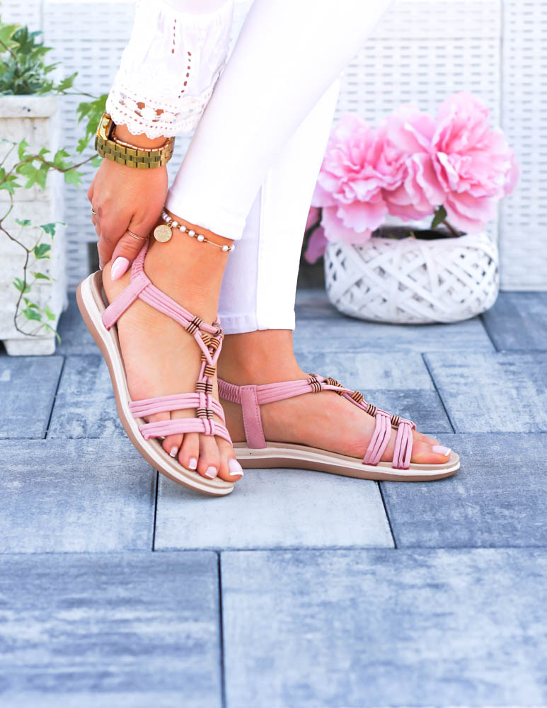 Różowe Pudrowe Sandały Damskie Na Gumki Boho