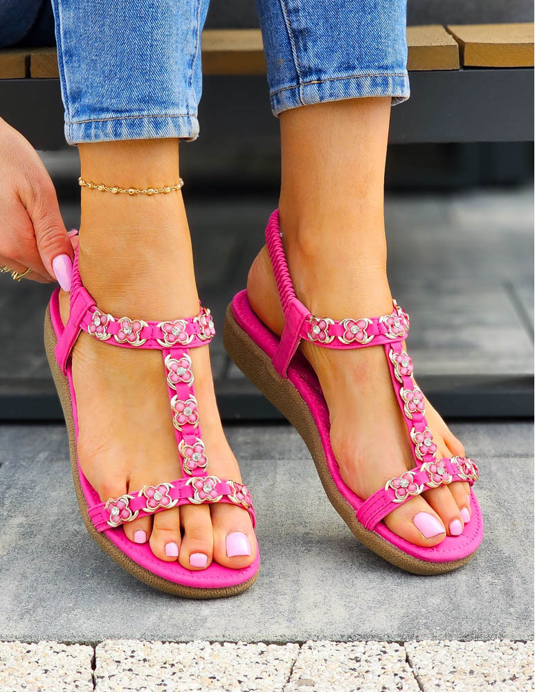 Sandały Na Płaskim Spodzie Kwiaty Pink Rose