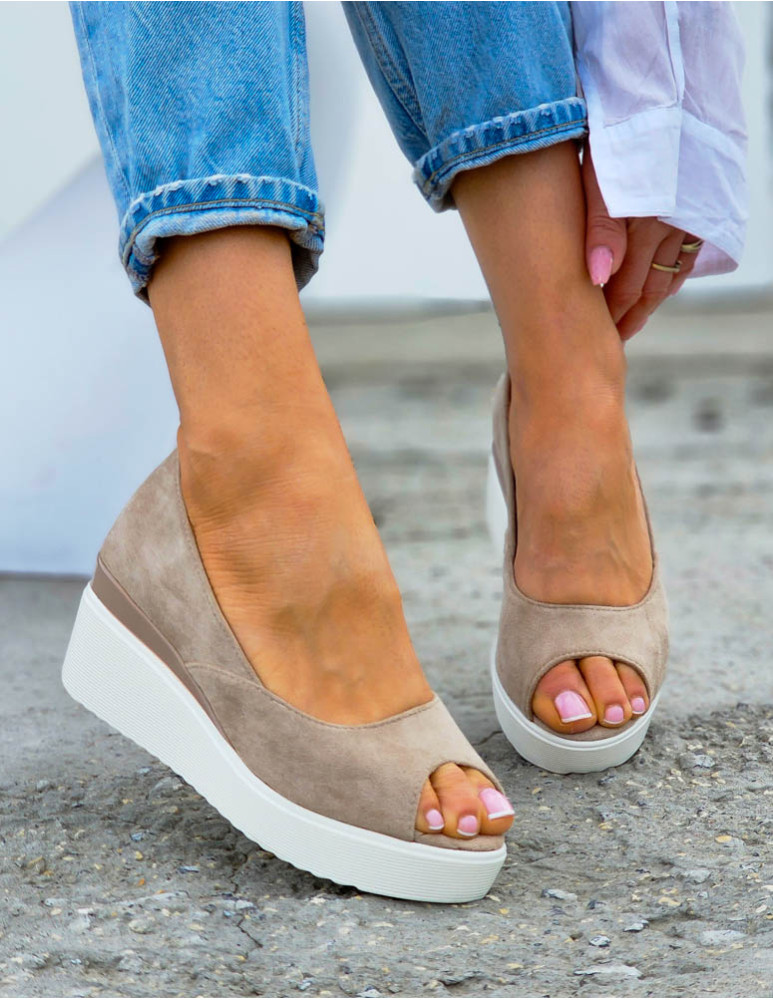 ❤Najnowsza kolekcja❤Wygodne, lekki, szare sandałki damskie na niskim koturnie❤Bardzo wygodne, kobiec..