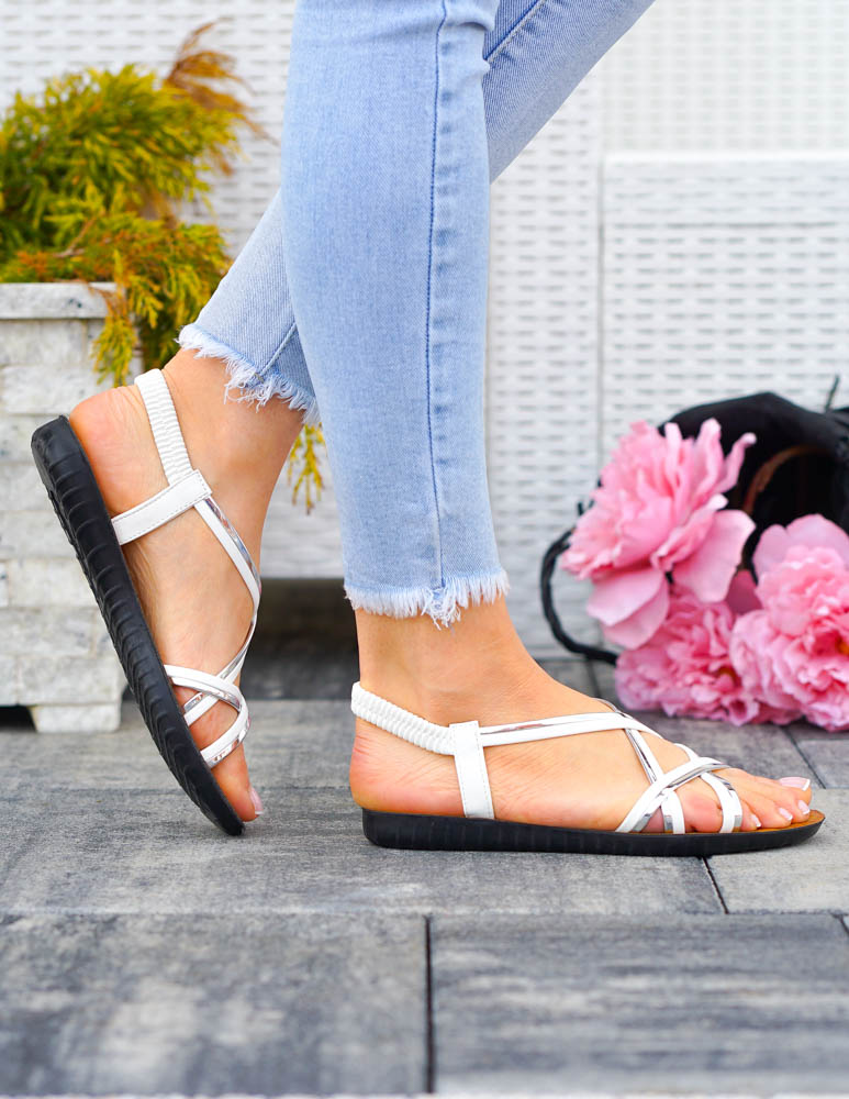 Srebrne Sandały Damskie Na Gumkę Roxet
