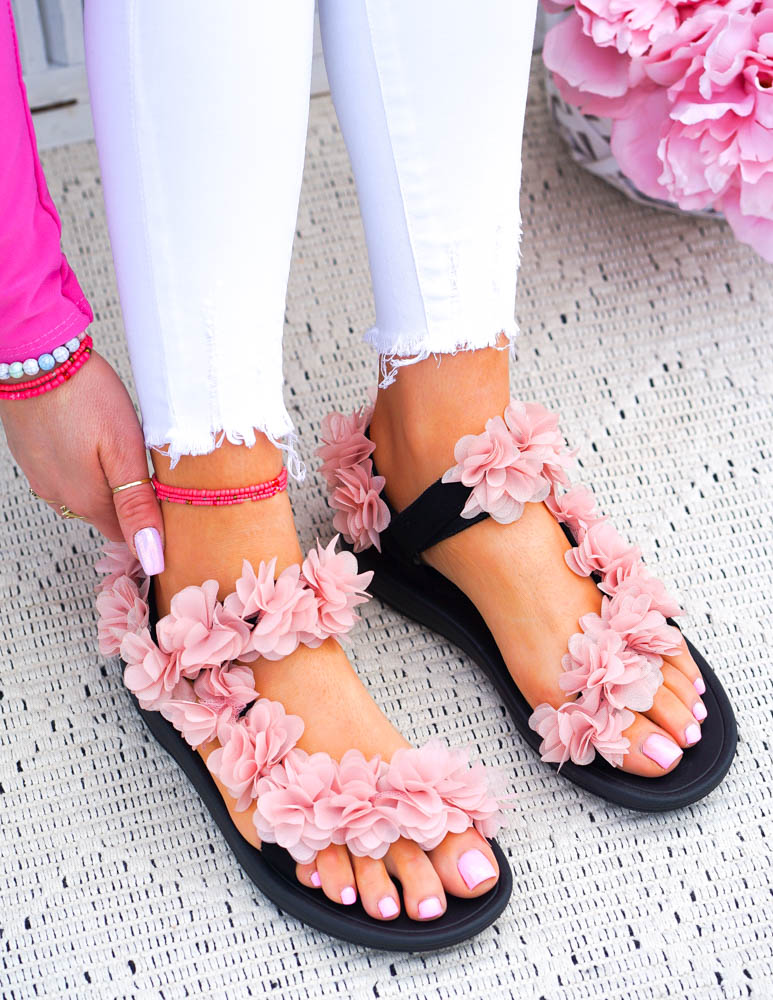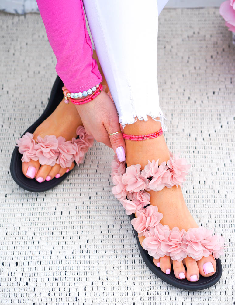 Sandały Na Płaskim Spodzie Kwiaty Pink Rose
