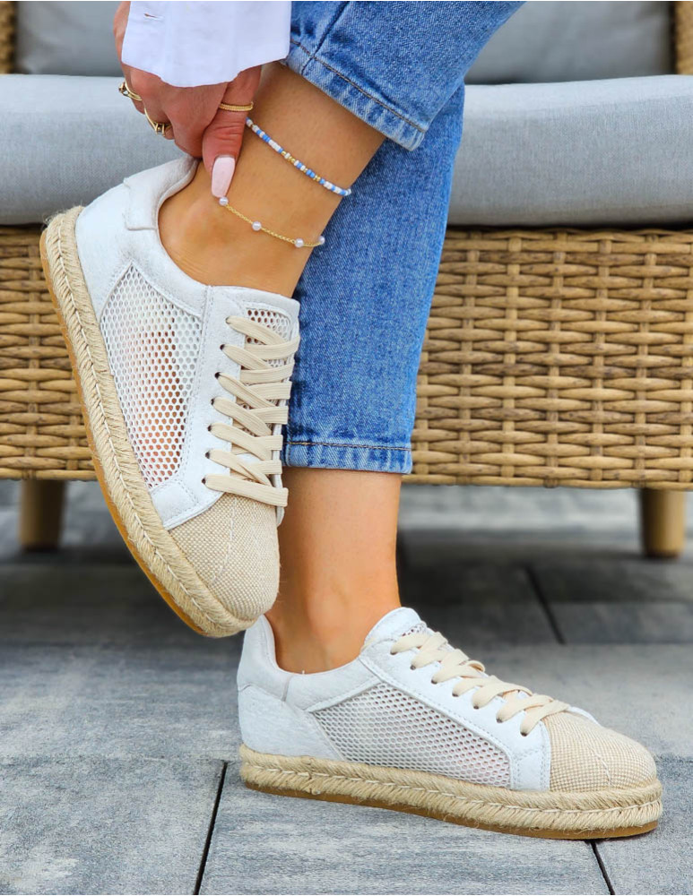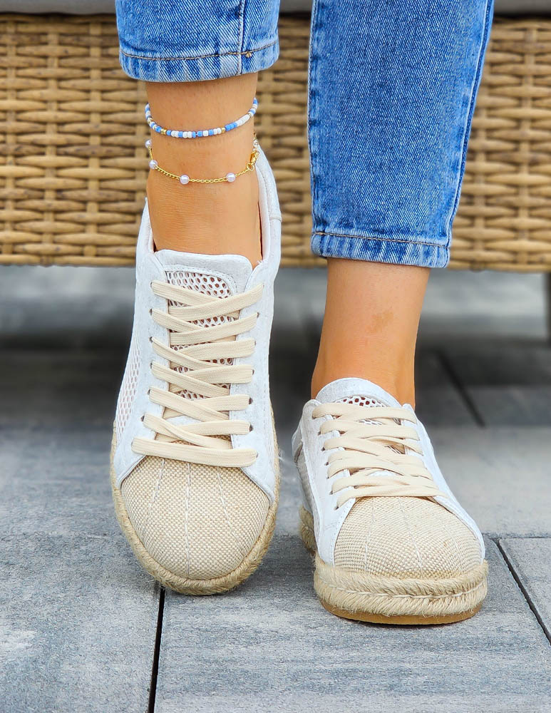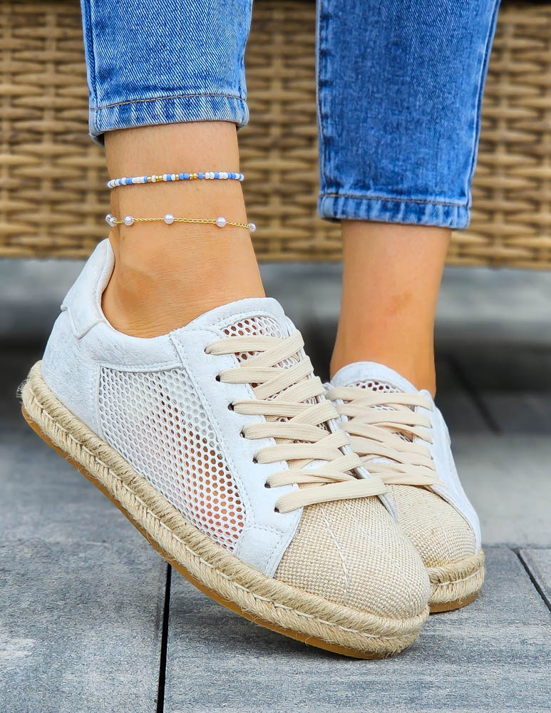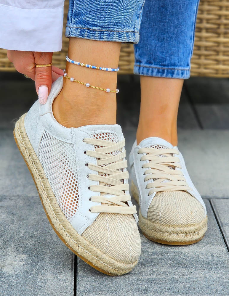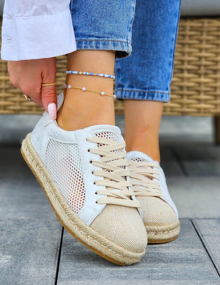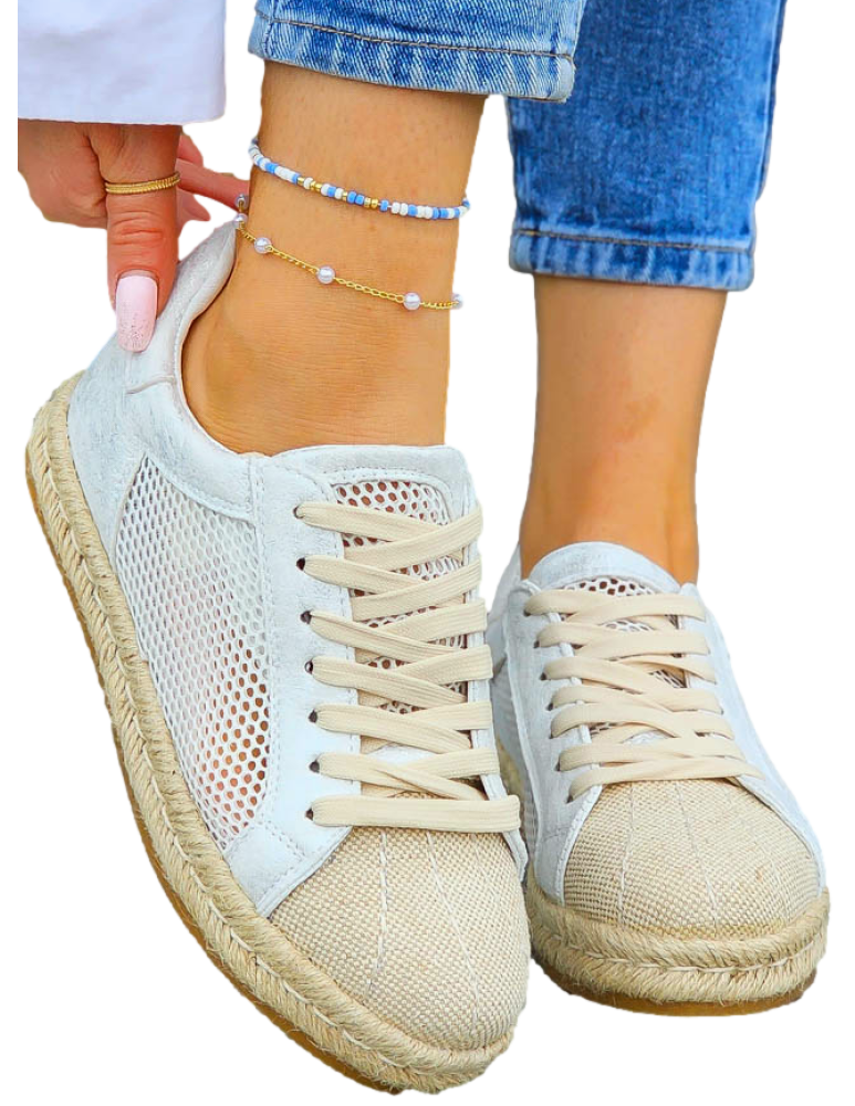 Siateczkowe Trampki Na Plecionej Podeszwie Natural Białe