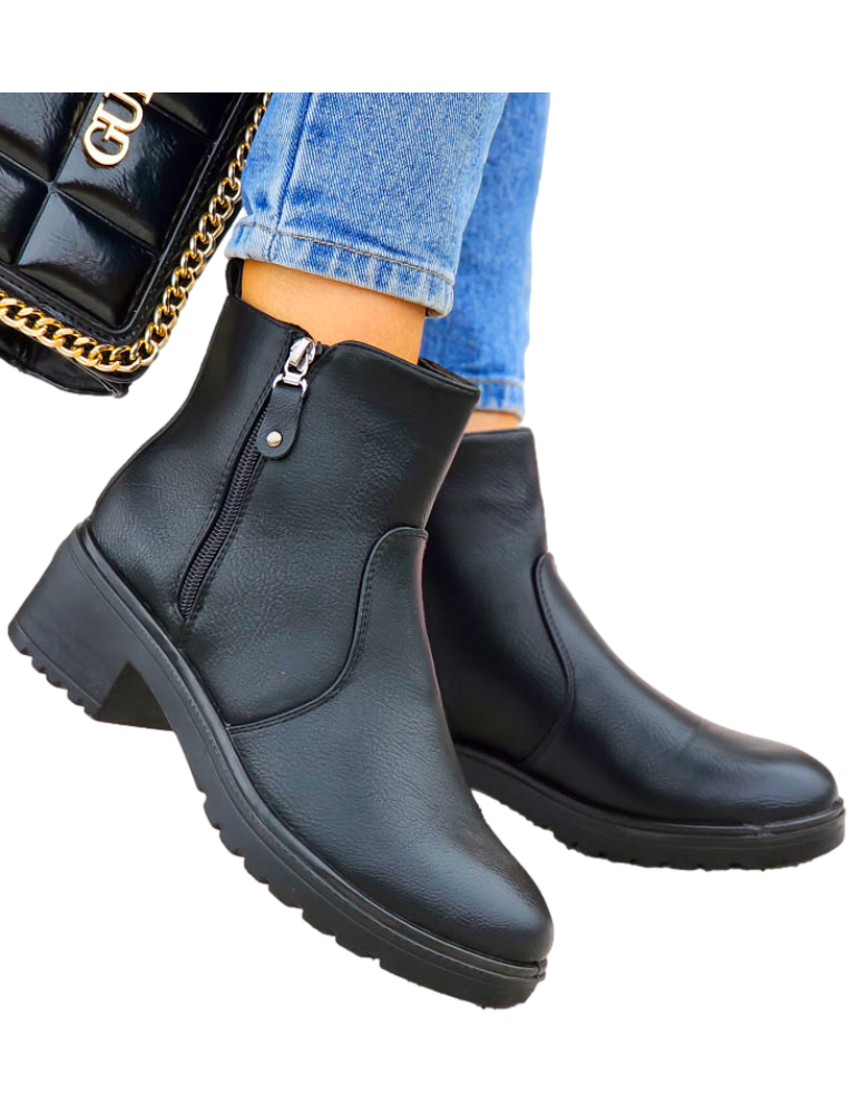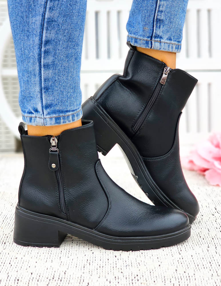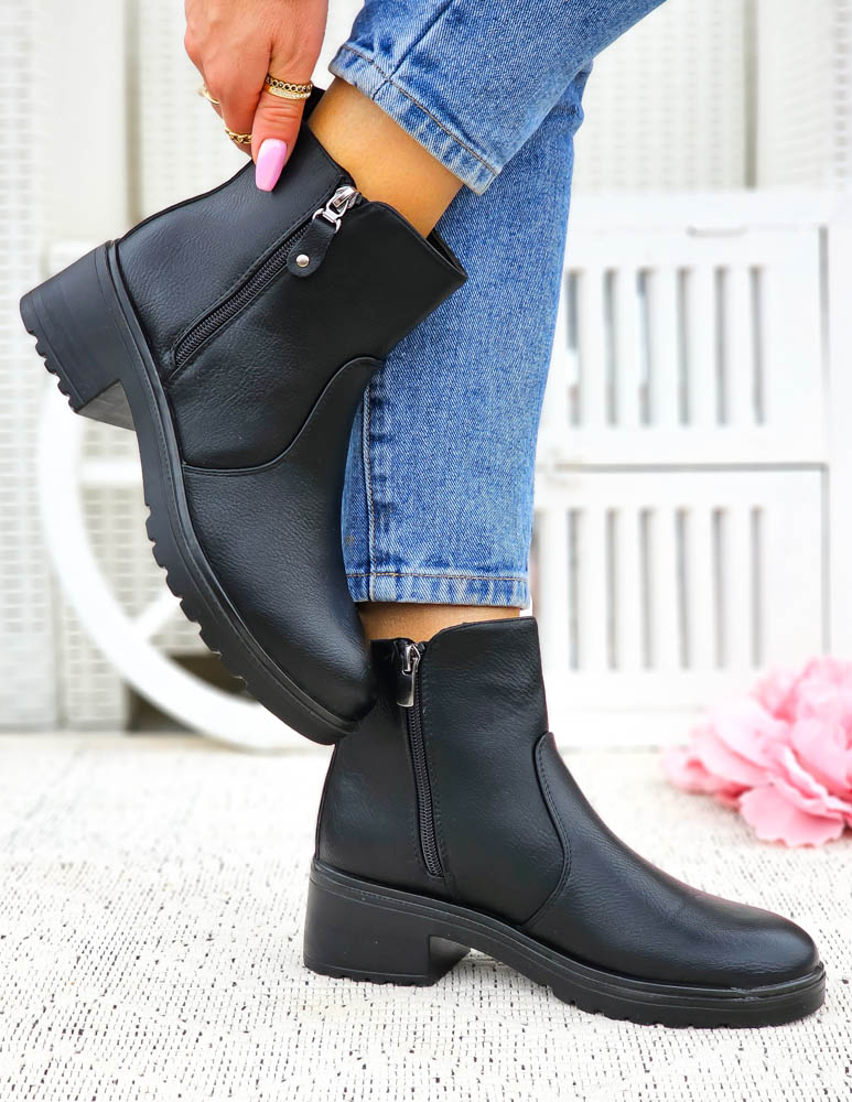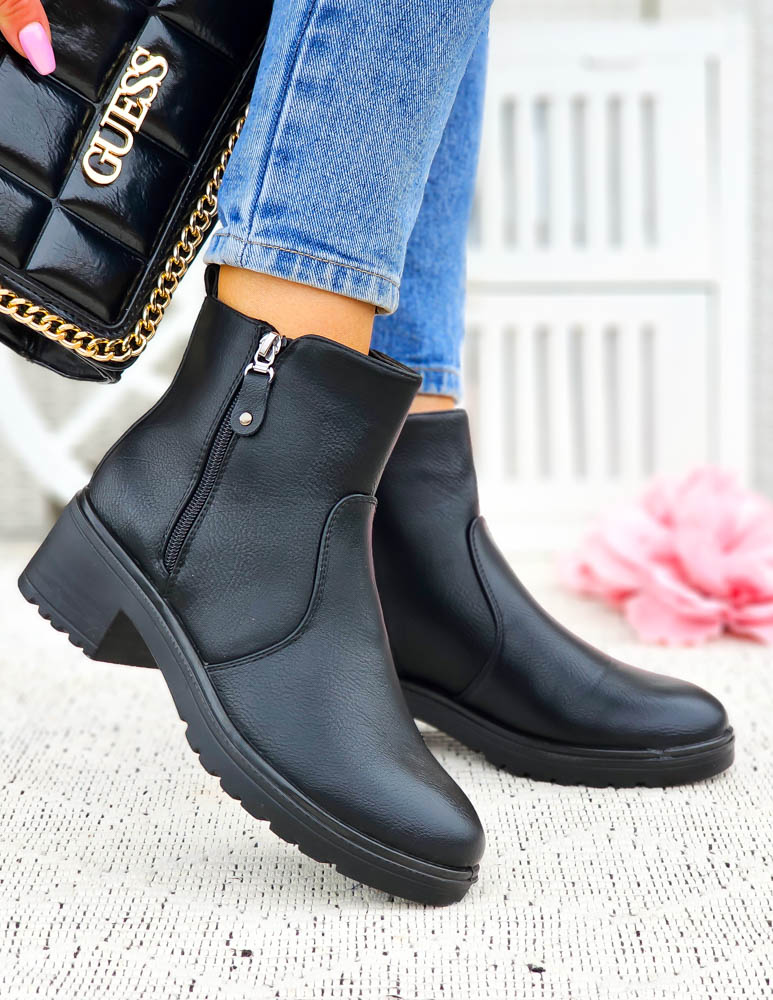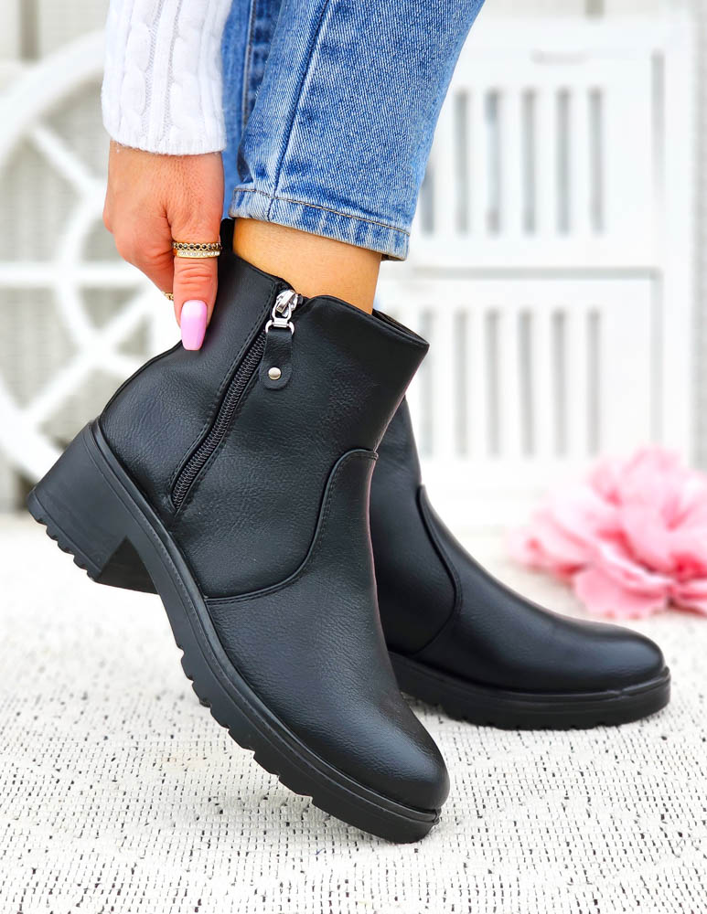Klasyczne Czarne Botki Damskie Na Obcasie Basic