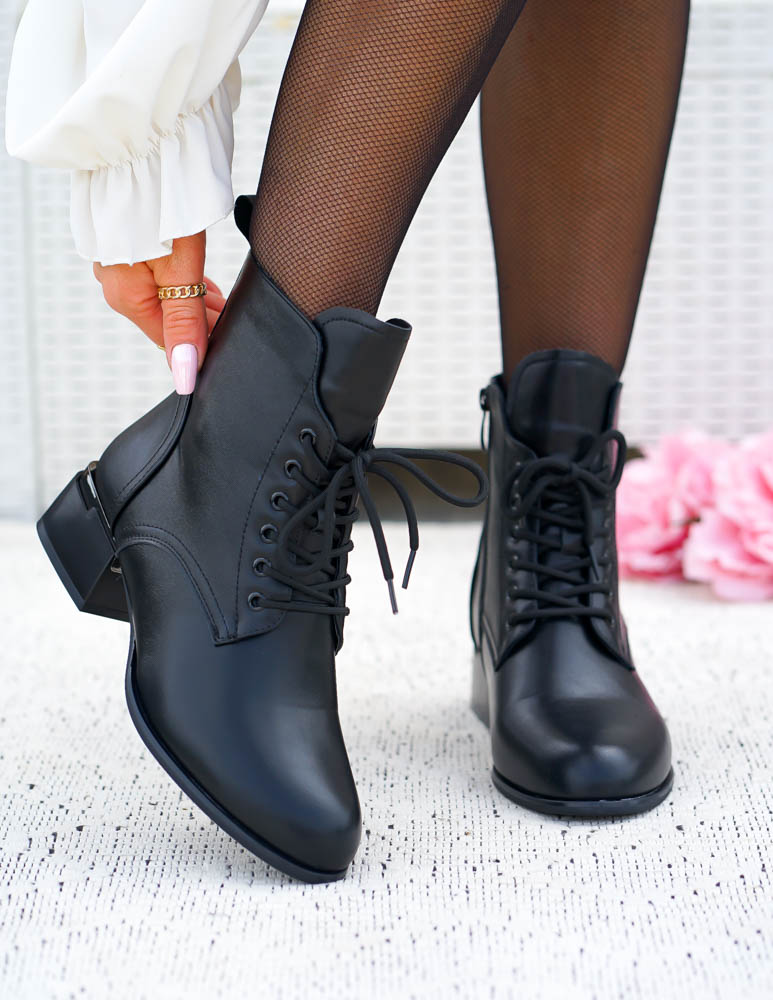- Kod produktu: Skórzane Sznurowane Botki Damskie Na Niskim Obcasie Valetino