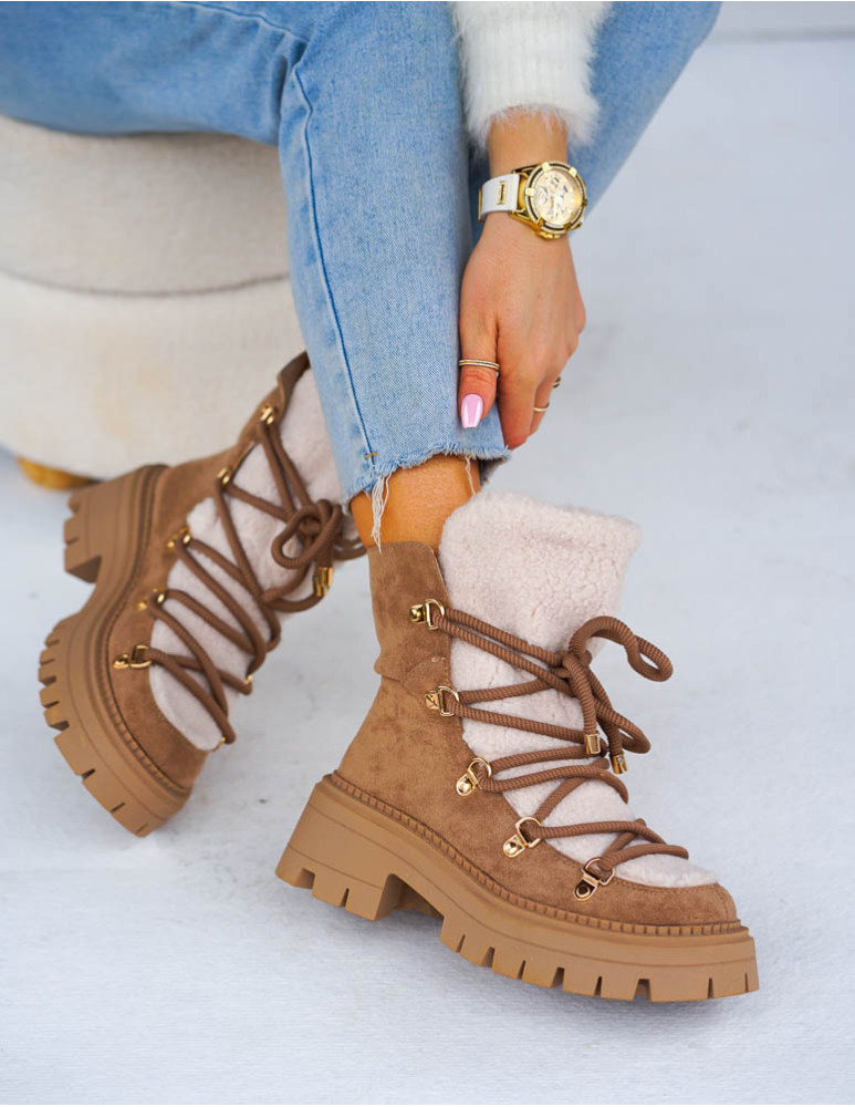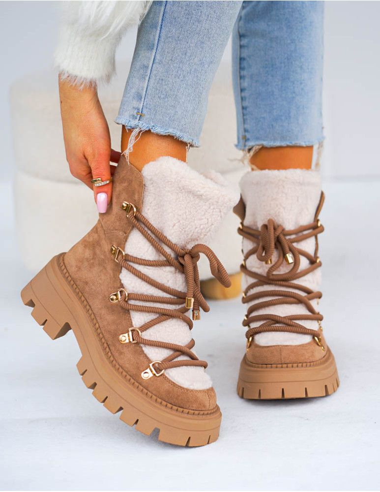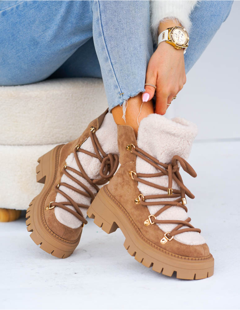 PRZEPIĘKNE ZAMSZOWE BOTKI, DOSTĘPNE W BEŻOWYM KOLORZEWYKONANE Z WYSOKIEJ JAKOŚCI MIĘKKIEJ ECO SKÓRY ..