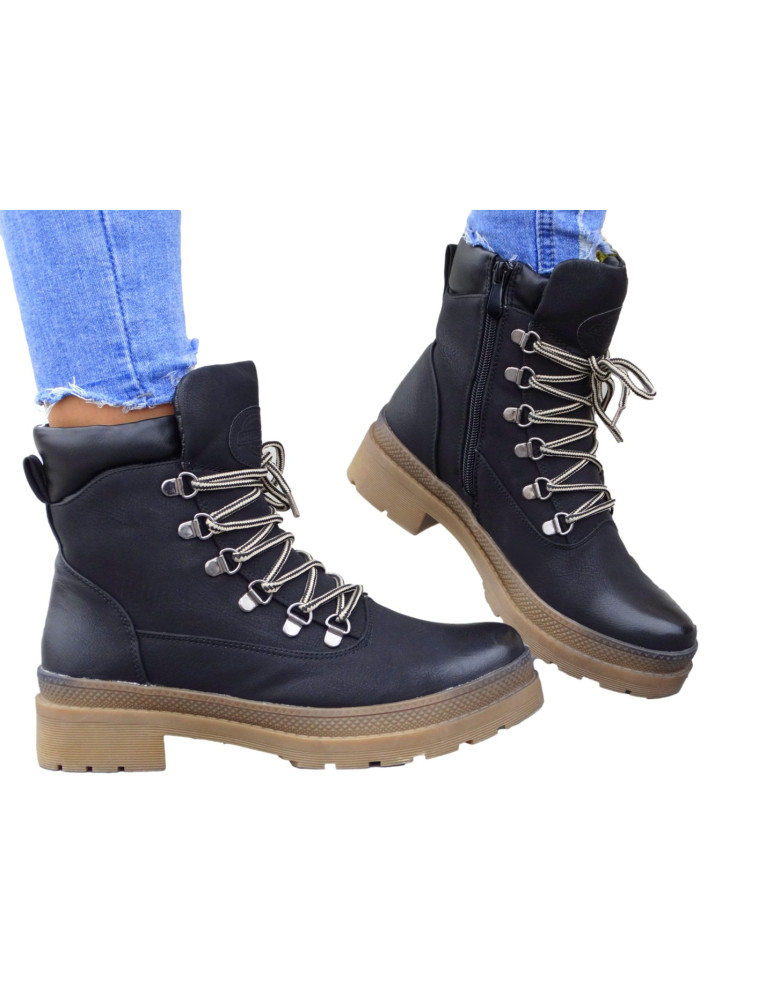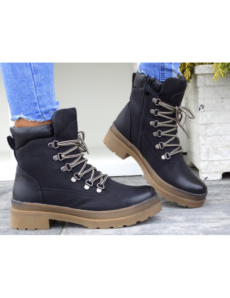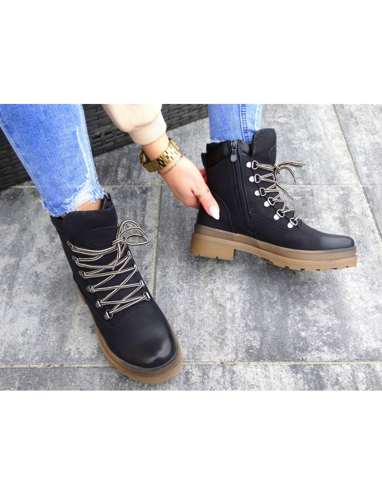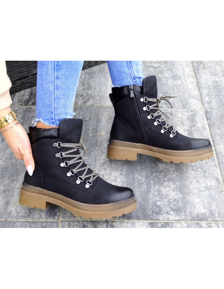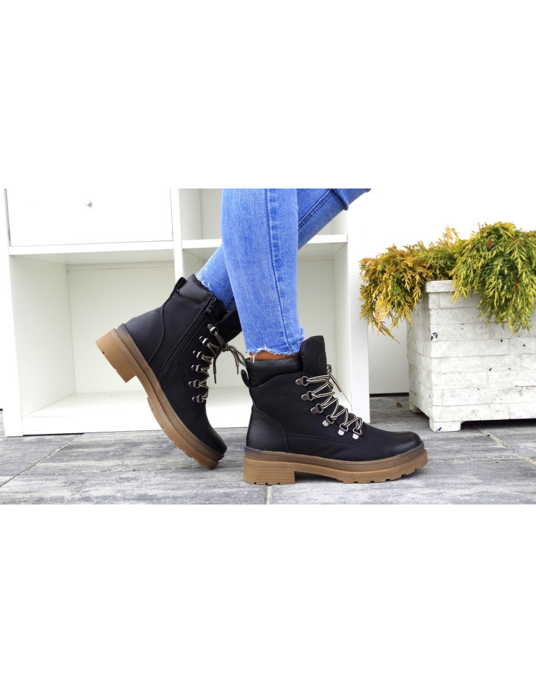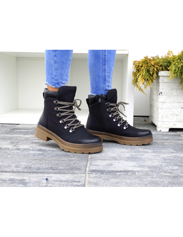 Botki są sznurowane, posiadają także suwak od wewnętrznej strony.