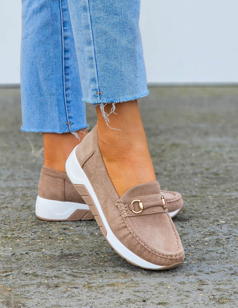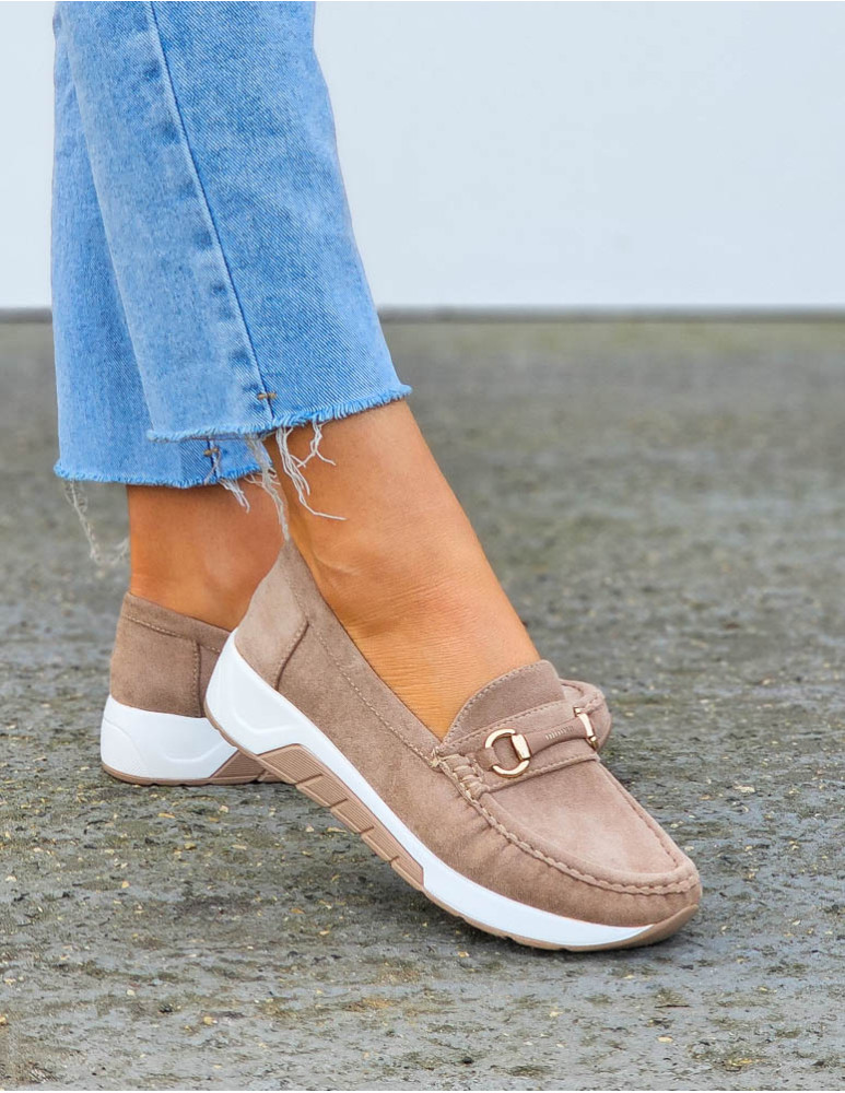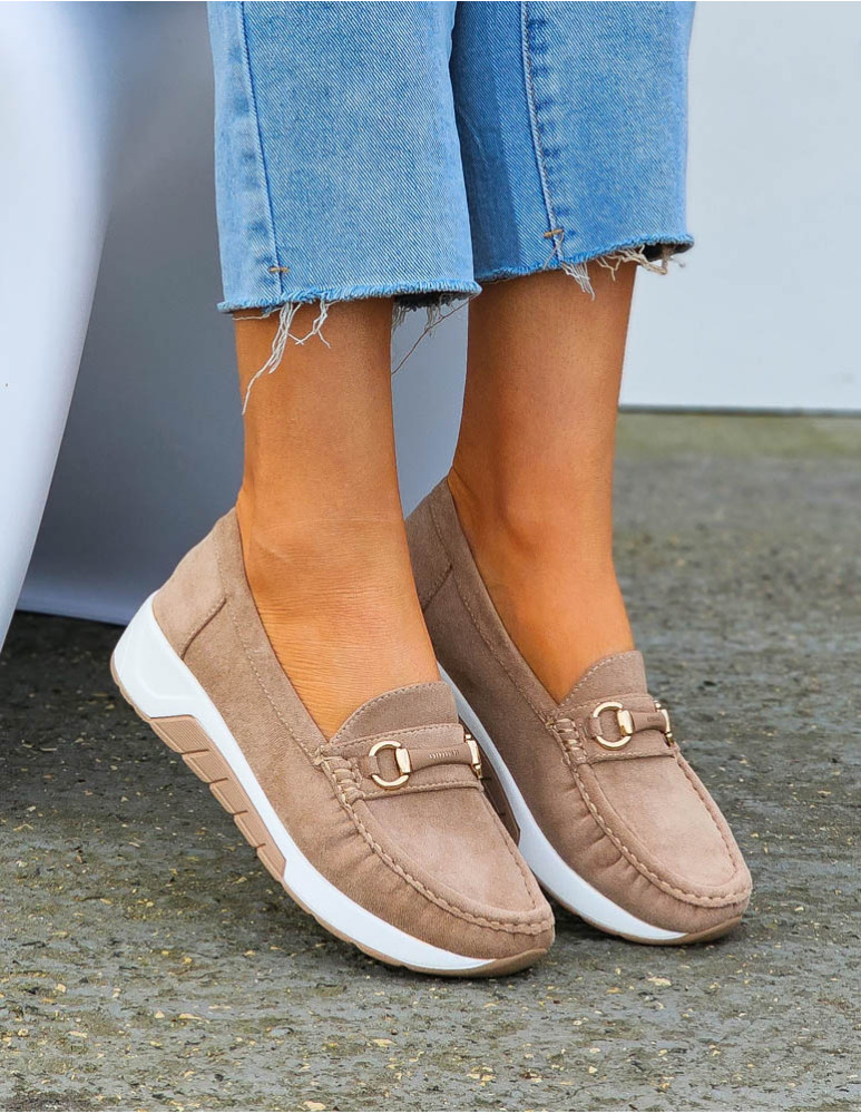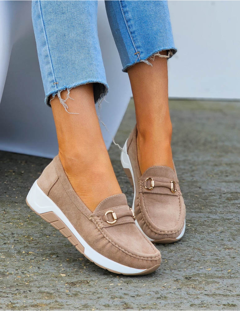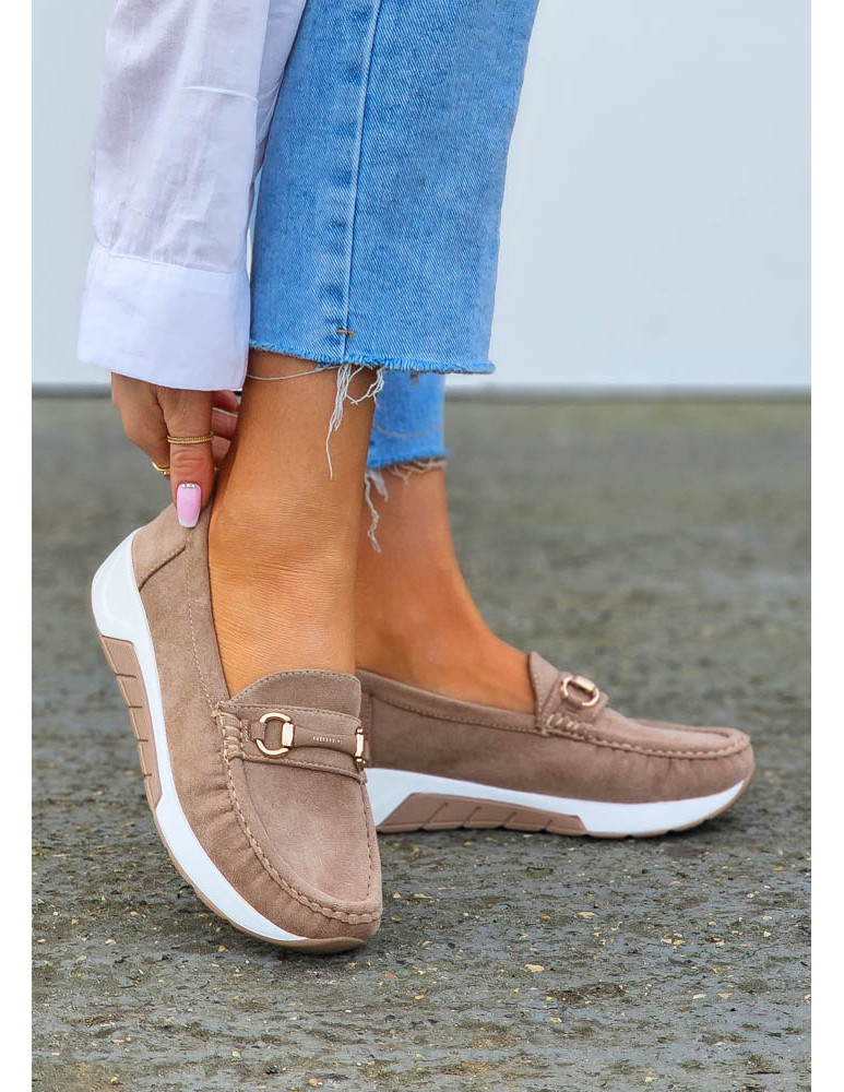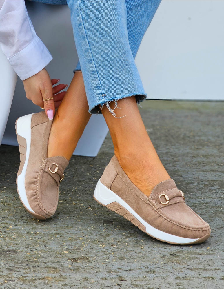 Beżowe Zamszowe Mokasyny Na Grubej Podeszwie Suzzy
