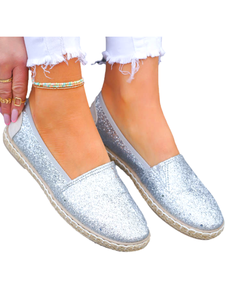 Srebrne Espadryle Na Plecionej Podeszwie Z Gumką