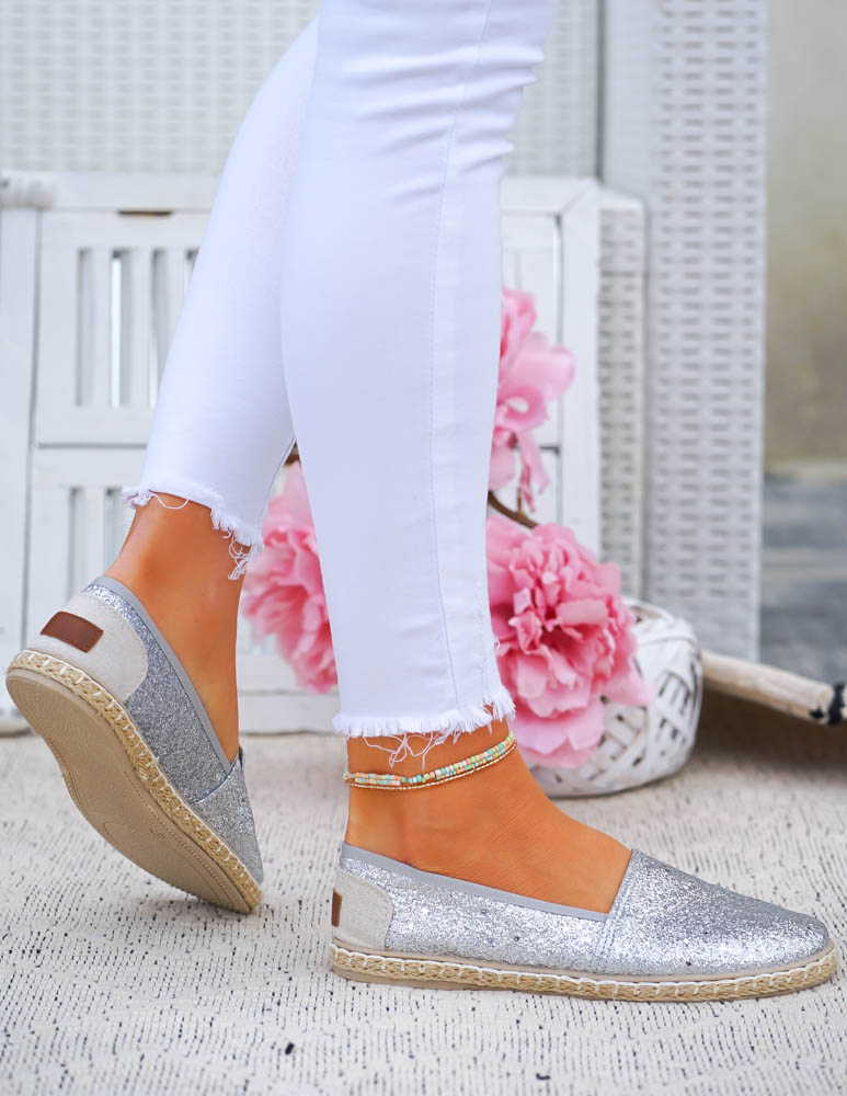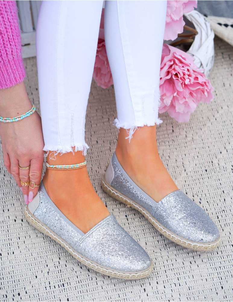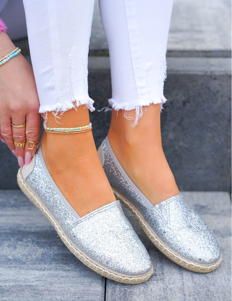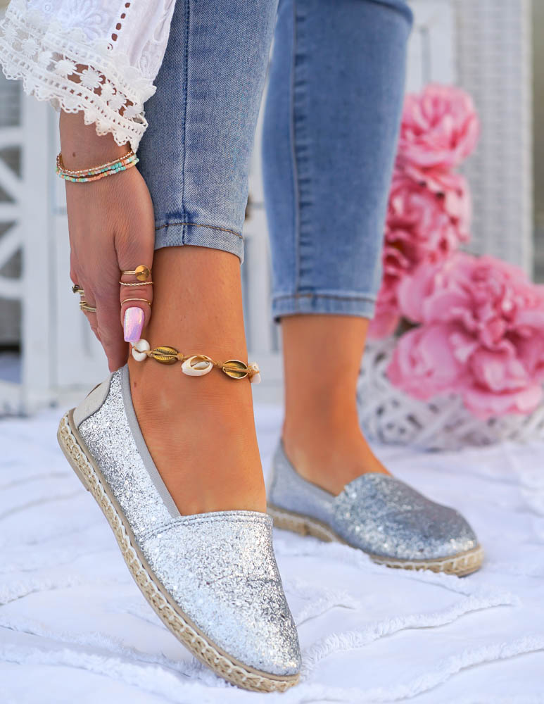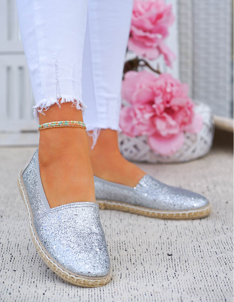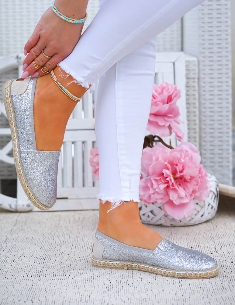 ❤Srebrne, brokatowe espadryle na plecionej podeszwie