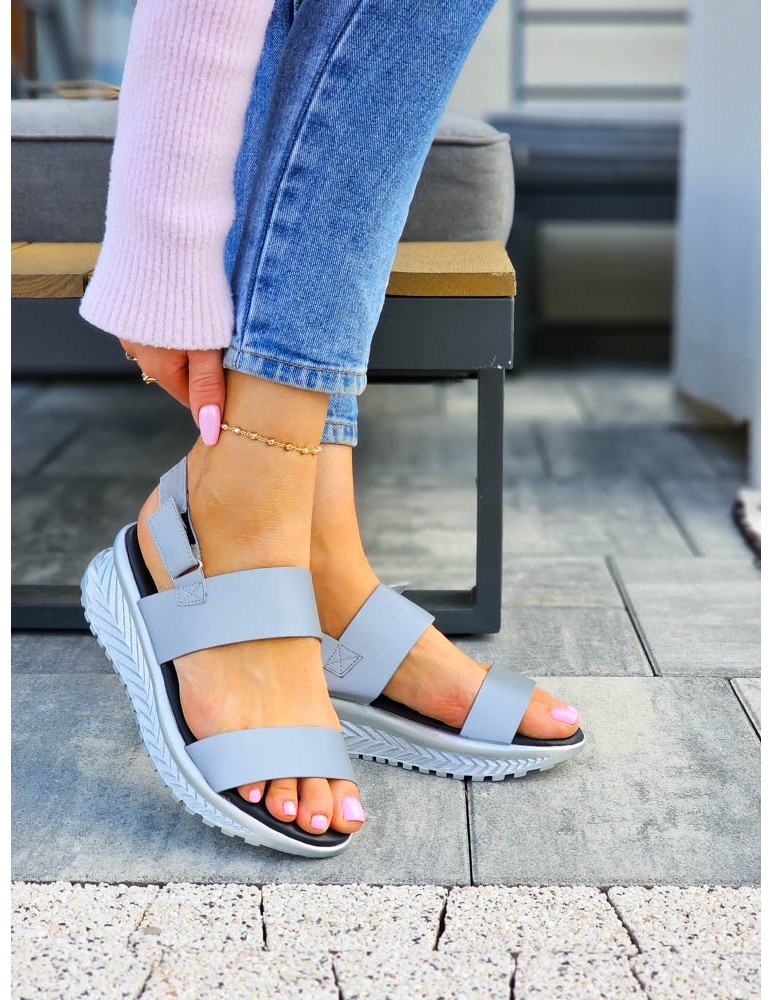 ❤Najnowsza kolekcja❤Wygodne, lekki, szare sandałki damskie na niskim koturnie❤Bardzo wygodne, kobiec..