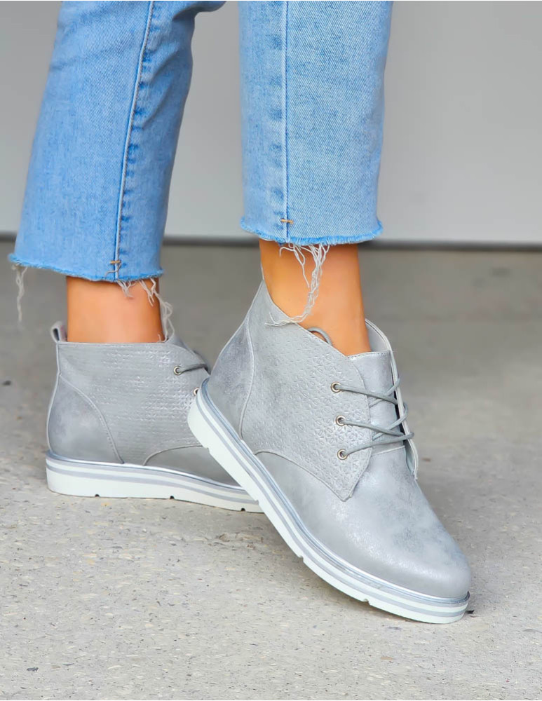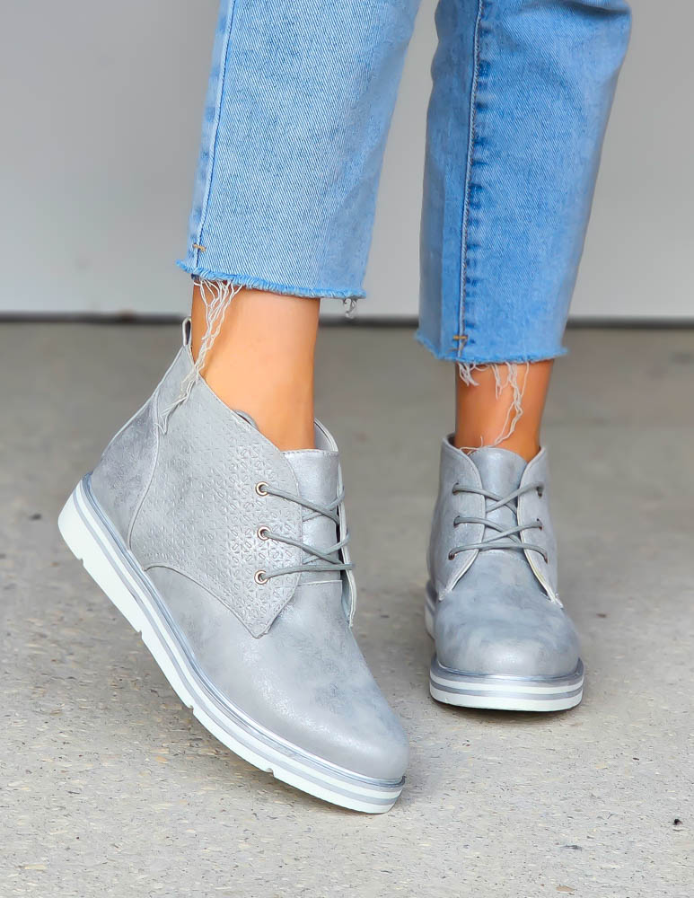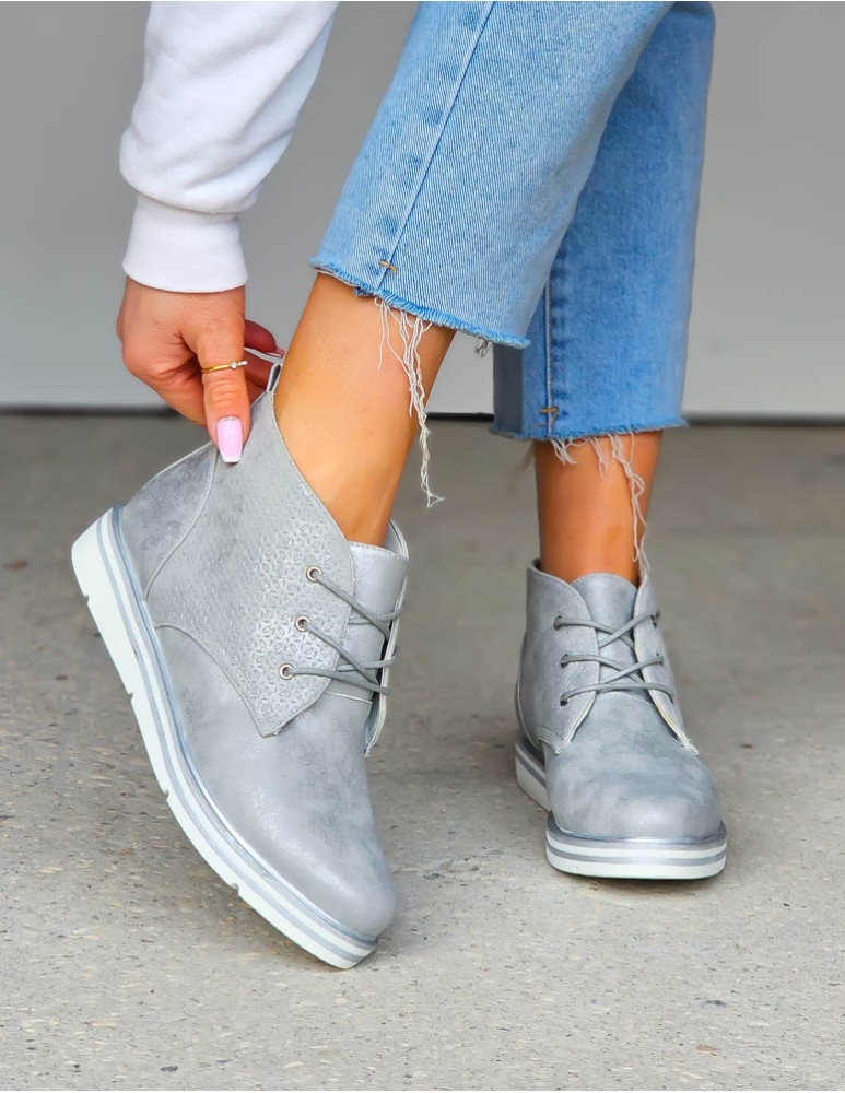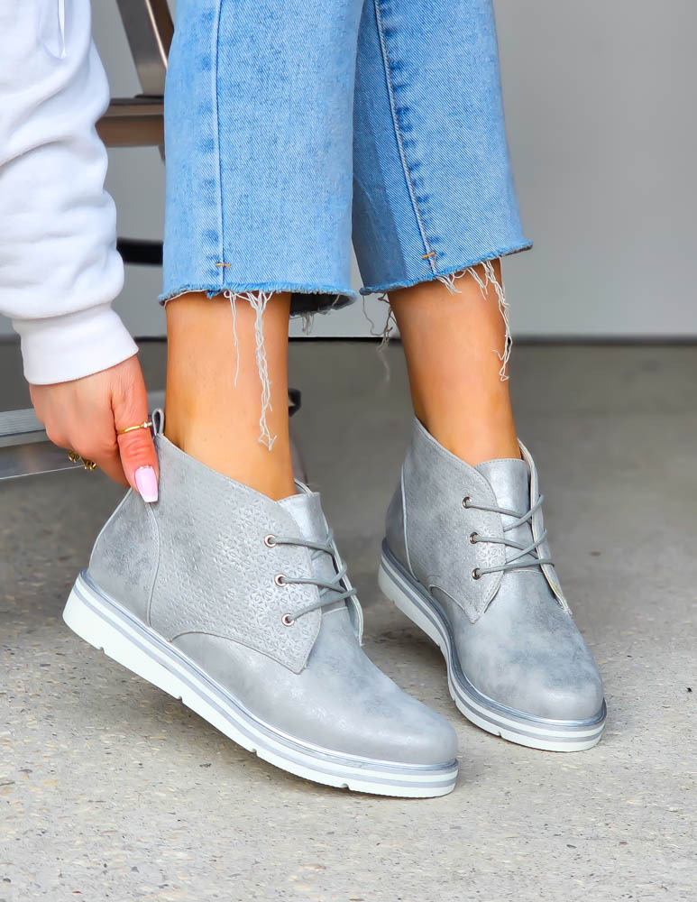 - Kod produktu: Srebrne Sznurowane Botki Na Grubej Podeszwie