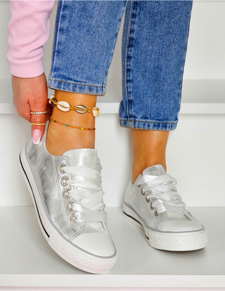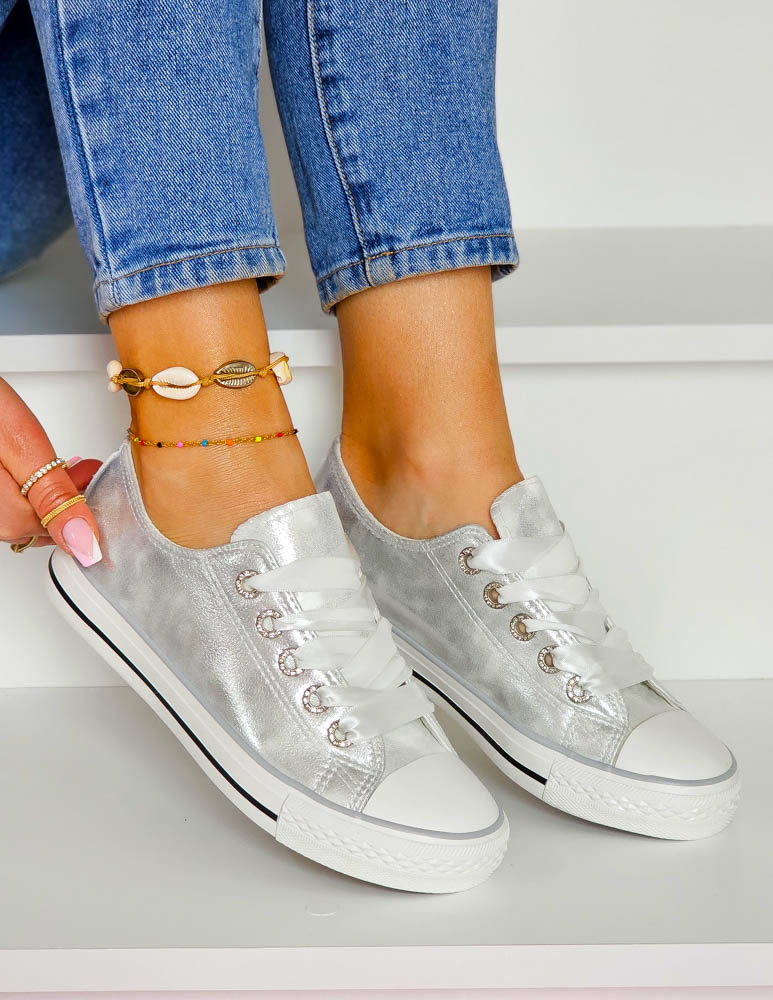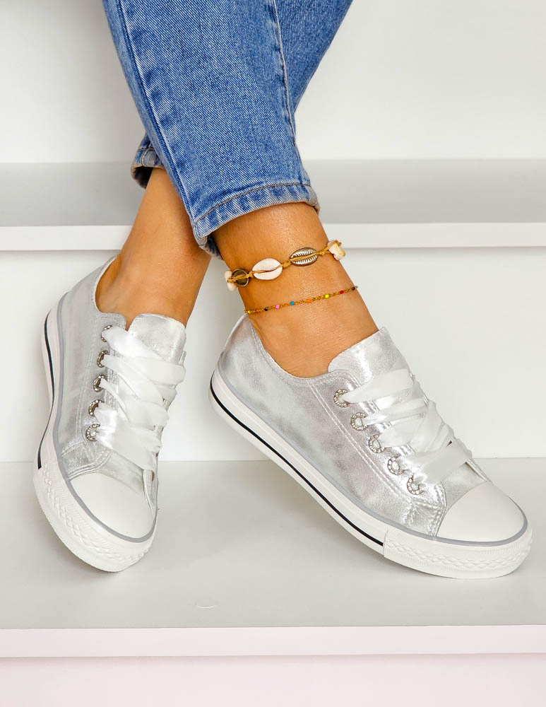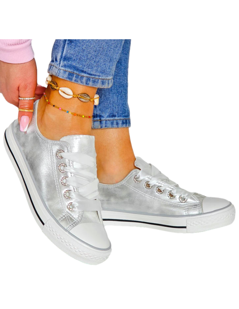 - Kod produktu: Srebrne Trampki Ze Skóry Ivone