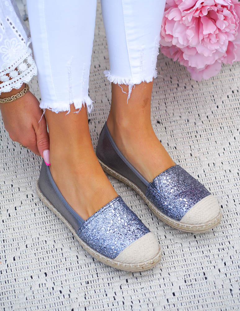 - Kod produktu: Szare Brokatowe Espadryle Baleriny Diamonds